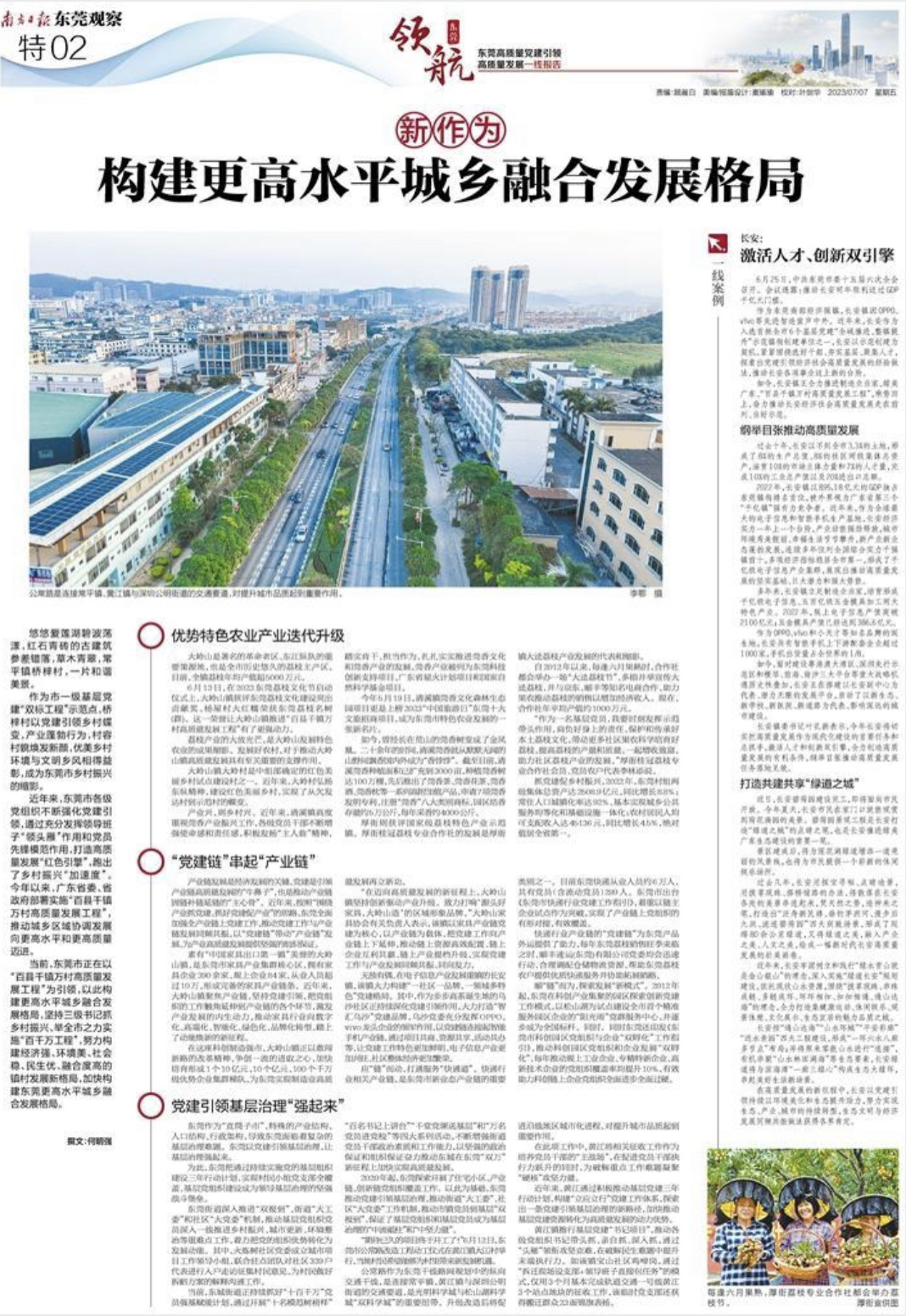 近年来,东莞市各级党组织不断强化党建引领,通过充分发挥领导班子“领头雁”作用和党员先锋模范作用,打造高质量发展“红色引擎”,跑出了乡村振兴“加速度”。今年以来,广东省委、省政府部署实施“百县千镇万村高质量发展工程”,推动城乡区域协调发展向更高水平和更高质量迈进。