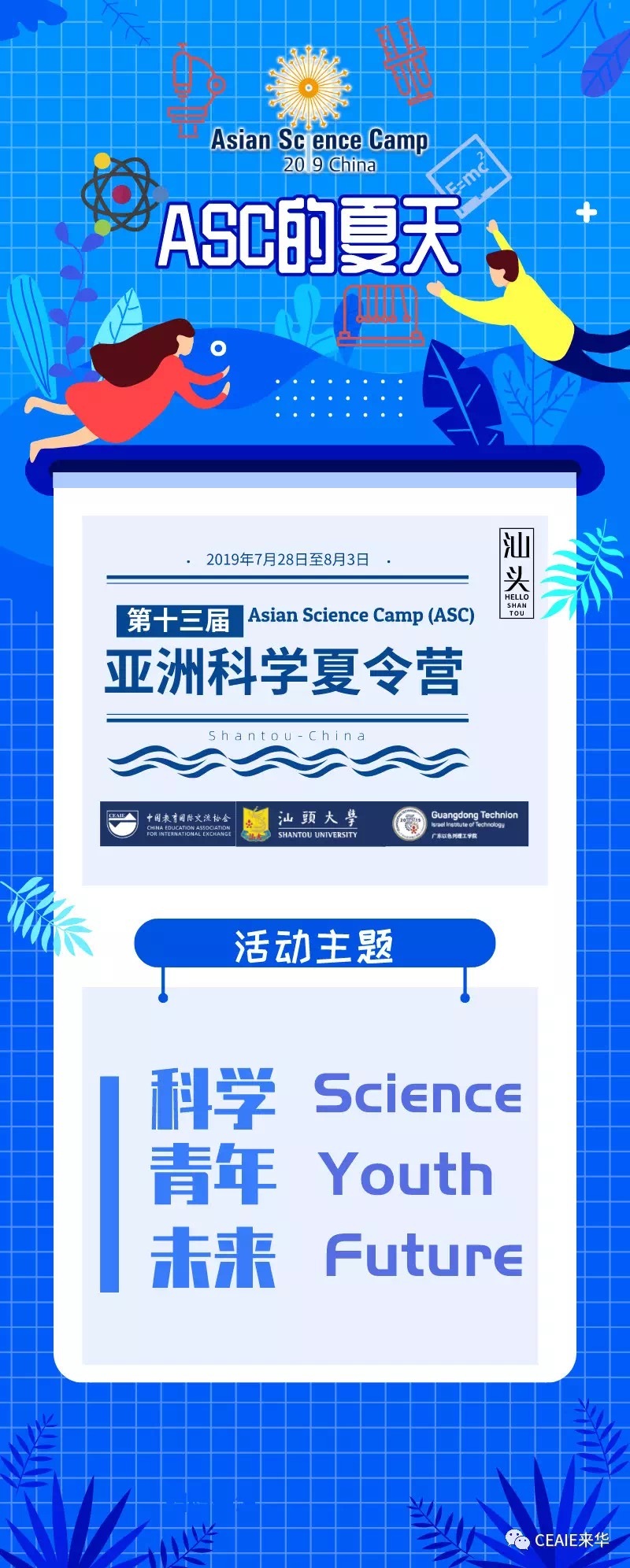 7月28日至8月3日,第13届亚洲科学夏令营(Asian Science Camp,简称ASC)将在广东汕头举行,届时包括4位诺贝尔奖获得者在内的16位自然科学领域杰出的世界级科学家受邀出席此次活动。