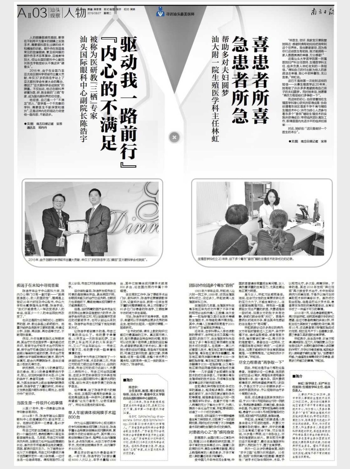 这是汕头大学医学院第一附属医院妇产科主任医师、生殖医学科主任、临床负责人林虹收到的一条短信。“得知自己的付出能为他人的家庭送去幸福,我心中那种喜悦,无以言表。”林虹说。