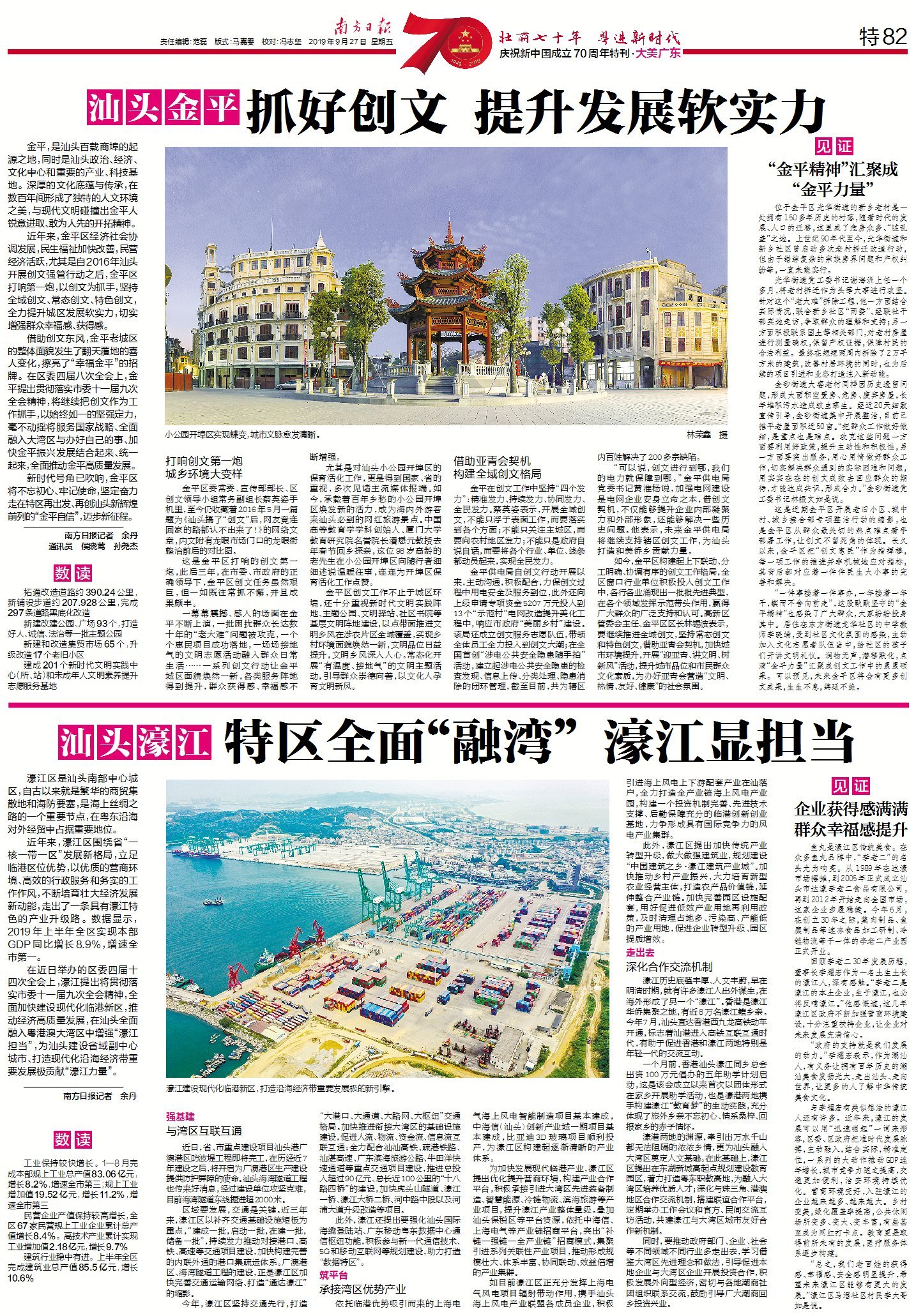 在近日举办的区委四届十四次全会上,濠江提出将贯彻落实市委十一届九次全会精神,全面加快建设现代化临港新区,推动经济高质量发展,在汕头全面融入粤港澳大湾区中增强“濠江担当”,为汕头建设省域副中心城市、打造现代化沿海经济带重要发展极贡献“濠江力量”。