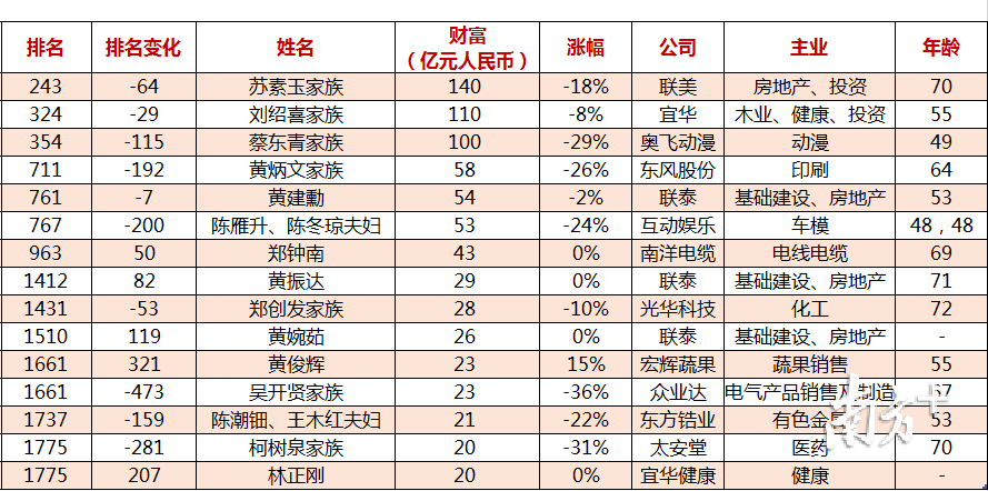 值得注意的是,较2018年,汕头共有3名富豪排名落榜,榜单中4名富豪身家也有不同幅度的“缩水”。