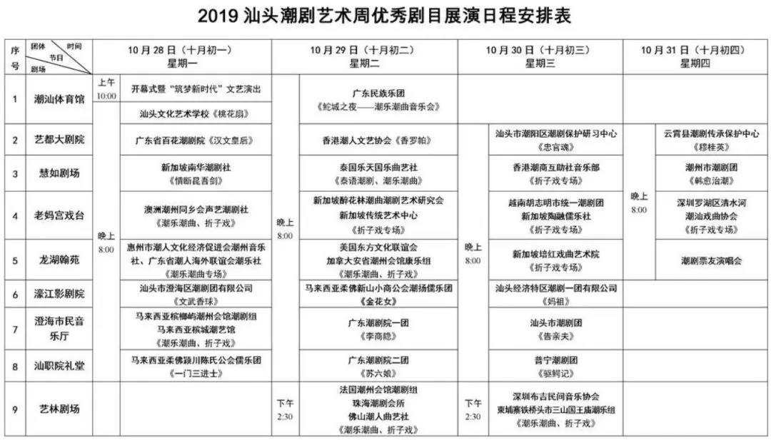 潮剧迷们的“大闹热”来啦!2019汕头潮剧艺术周优秀剧目展演将于10月28至31日在汕头市各大演出剧场举行。