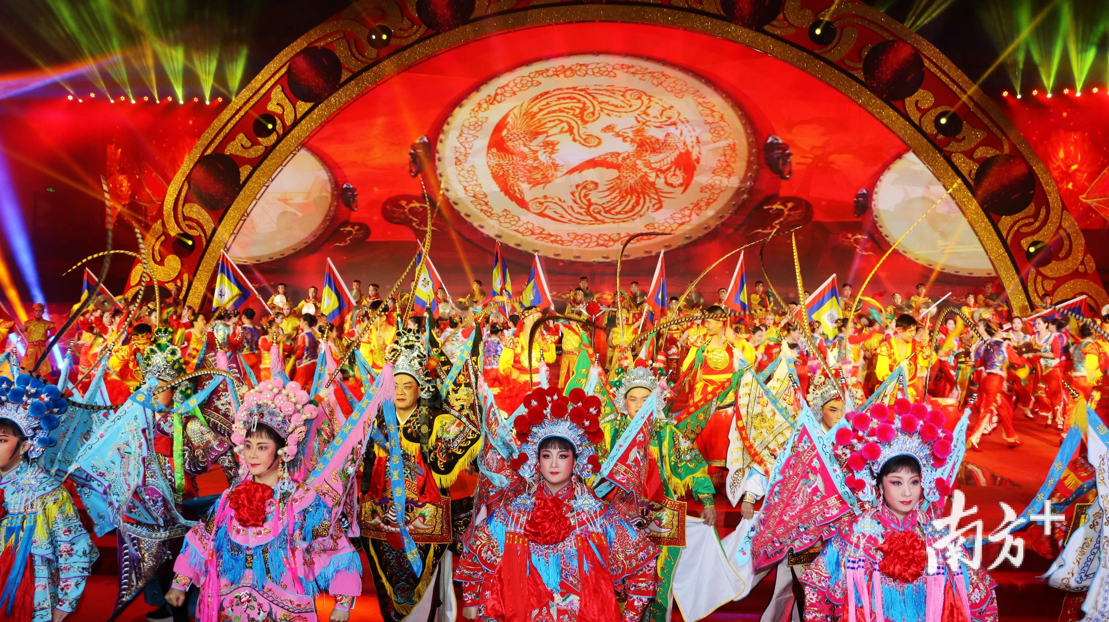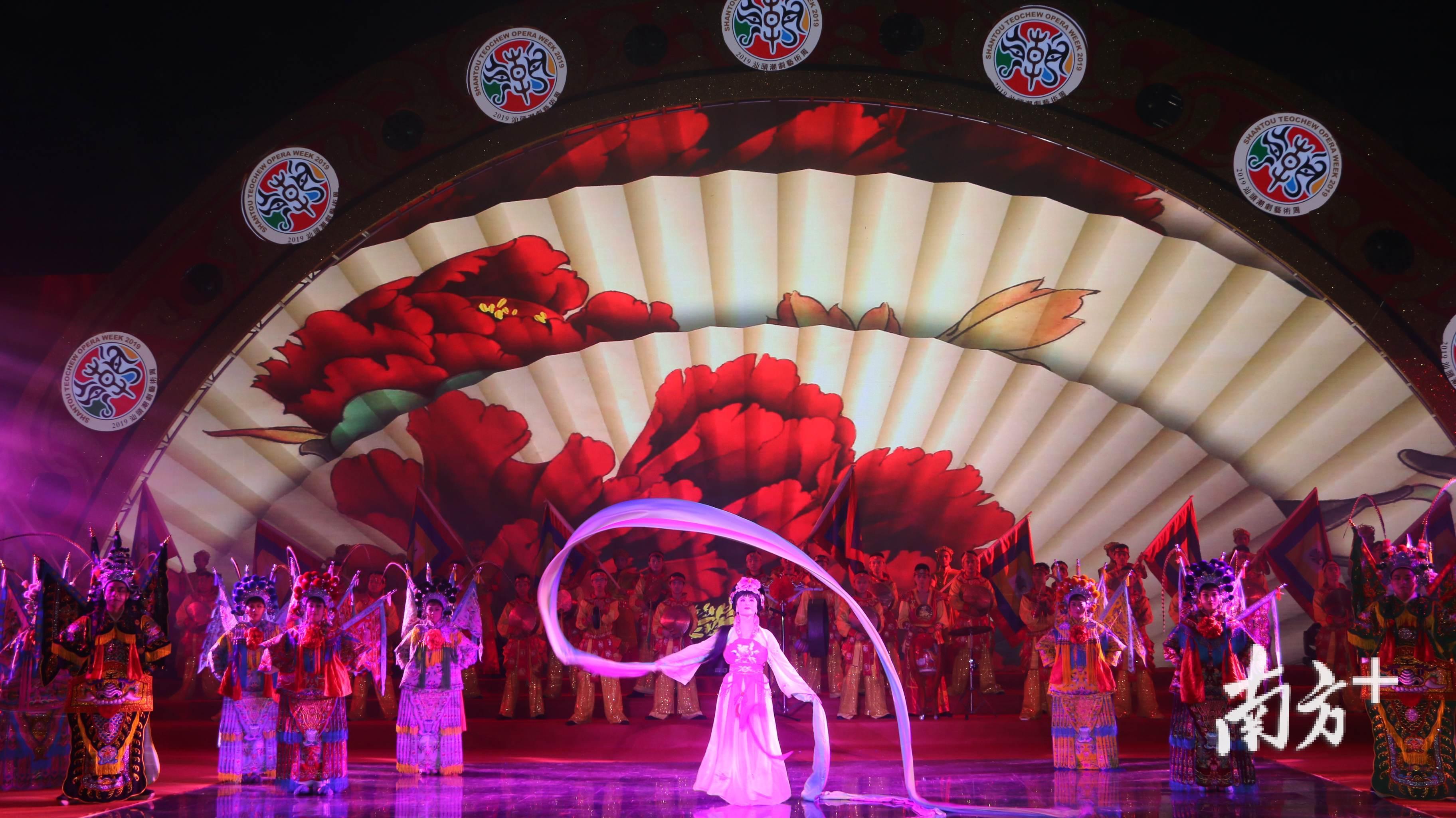 在“粉墨展风华”篇章中,广东潮剧院的著名演员献上优秀精品剧目片段,展现潮剧传承发展取得的新成效。值得一提的是,泰国乐天国乐曲艺社、越南胡志明市统一潮剧团、新加坡培红戏曲艺术院、马来西亚槟城潮艺馆4个来自的海外演出团体献上了用泰语、越南语、英语、马来语演唱的潮曲,让人眼前一亮;潮剧《桃花扇》片段则展现了第一个潮剧表演本科班学员的新时代风采;在演出尾声,姚璇秋、方展荣、郑健英等潮剧名家登台同唱潮语歌曲《潮汕谣》,开幕式也在舞蹈、杂技以及多媒体投影的创意配合下落下帷幕。