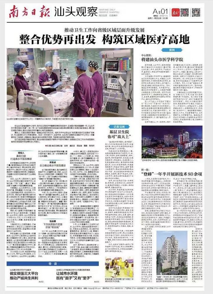 在汕头打造省域副中心城市、现代化沿海经济带重要发展极的实践中,区域医疗高地是重要一环。《汕头市关于贯彻落实〈构建“一核一带一区”区域发展新格局促进全省区域协调发展的意见〉实施方案》就指出,要打造区域医疗高地,提升沿海经济带东翼中心城市发展能级。