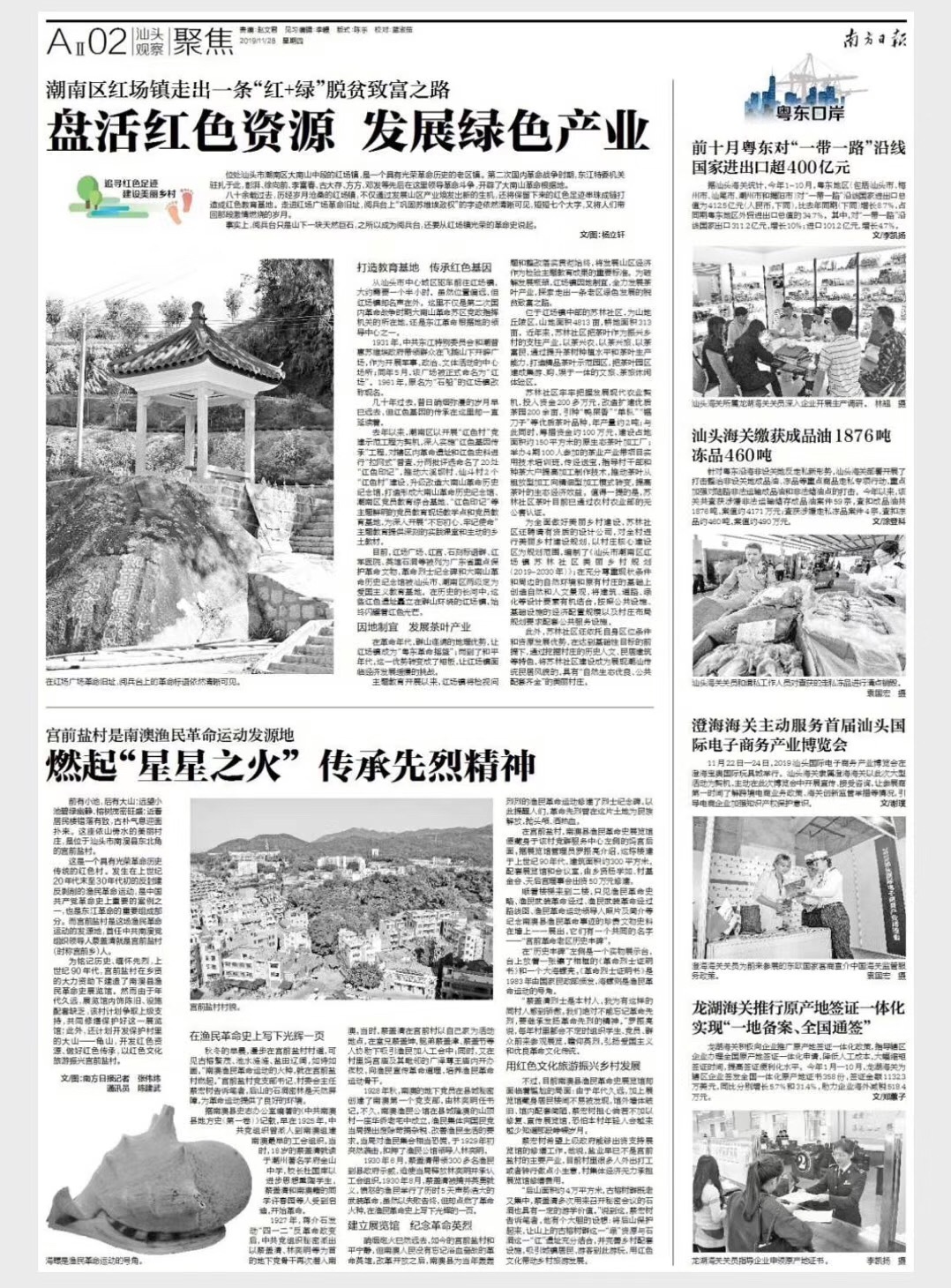 《南方日报·汕头观察》今起开设“追寻红色足迹 建设美丽乡村”栏目,派出记者深入汕头老区走访了解红色革命传统及老区镇、老区村的振兴建设工作,讲好先辈们的革命故事,呈现汕头实施乡村振兴战略、建设美丽乡村的成果,用“脚力、眼力、脑力、笔力”践行初心使命。
