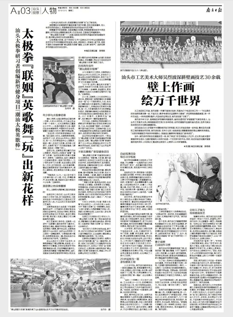 让他更高兴的是,这个项目在12月1日参加2019年汕头首届海丝武术文化节中夺得集体项目金奖。他说,获奖表示一种肯定,接下来,他将不遗余力地继续完善“潮汕英歌太极棒”套路,让它更“接地气”,活跃在更多市民群众的文体生活中。
