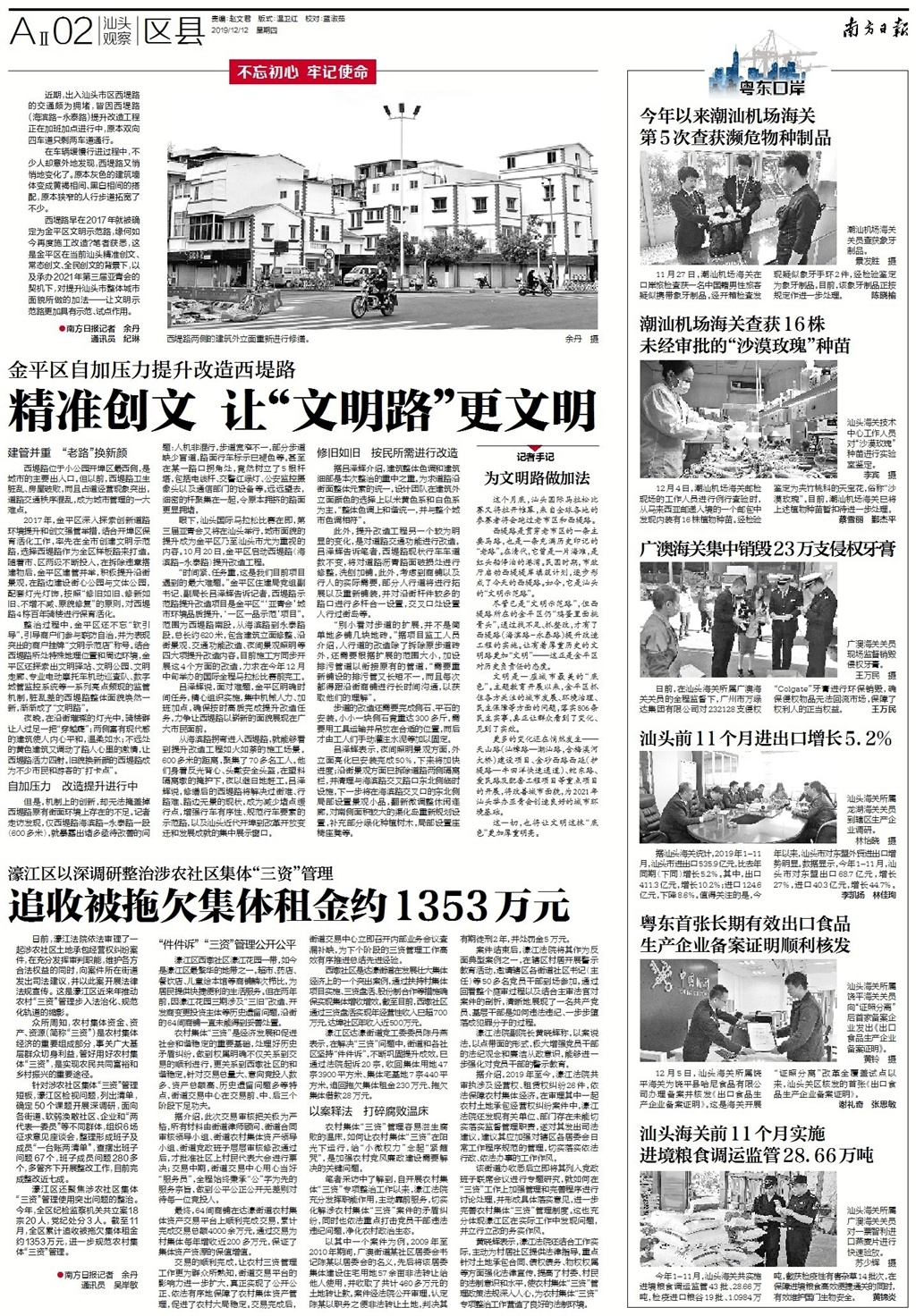 吕泽辉说,面对难题,金平区明确时间任务,精心组织实施,集中机械人力、加班加点,确保按时高质完成提升改造任务,力争让西堤路以崭新的面貌展现在广大市民面前。