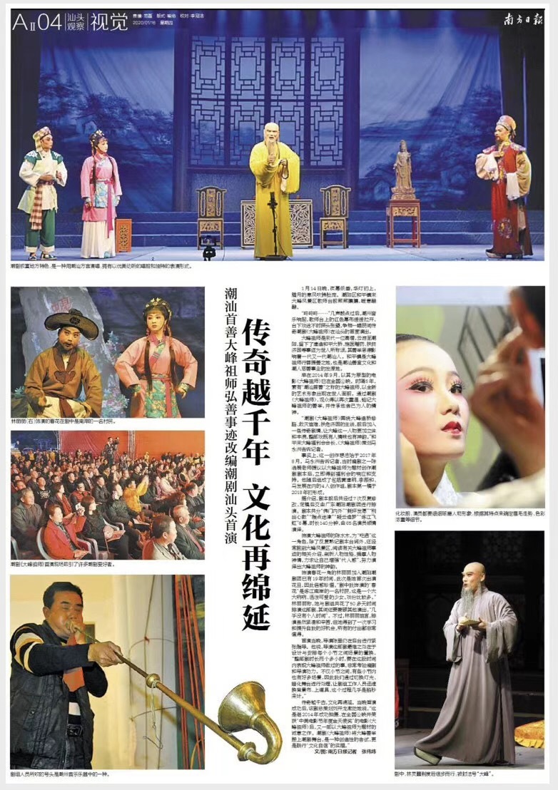 早在2014年9月,以其为原型的电影《大峰祖师》已在全国公映。时隔5年,素有“潮汕首善”之称的大峰祖师,以全新的艺术形象出现在世人面前。通过潮剧《大峰祖师》,观众得以再次重温、铭记大峰祖师的善举,并传承他舍己为人的精神。