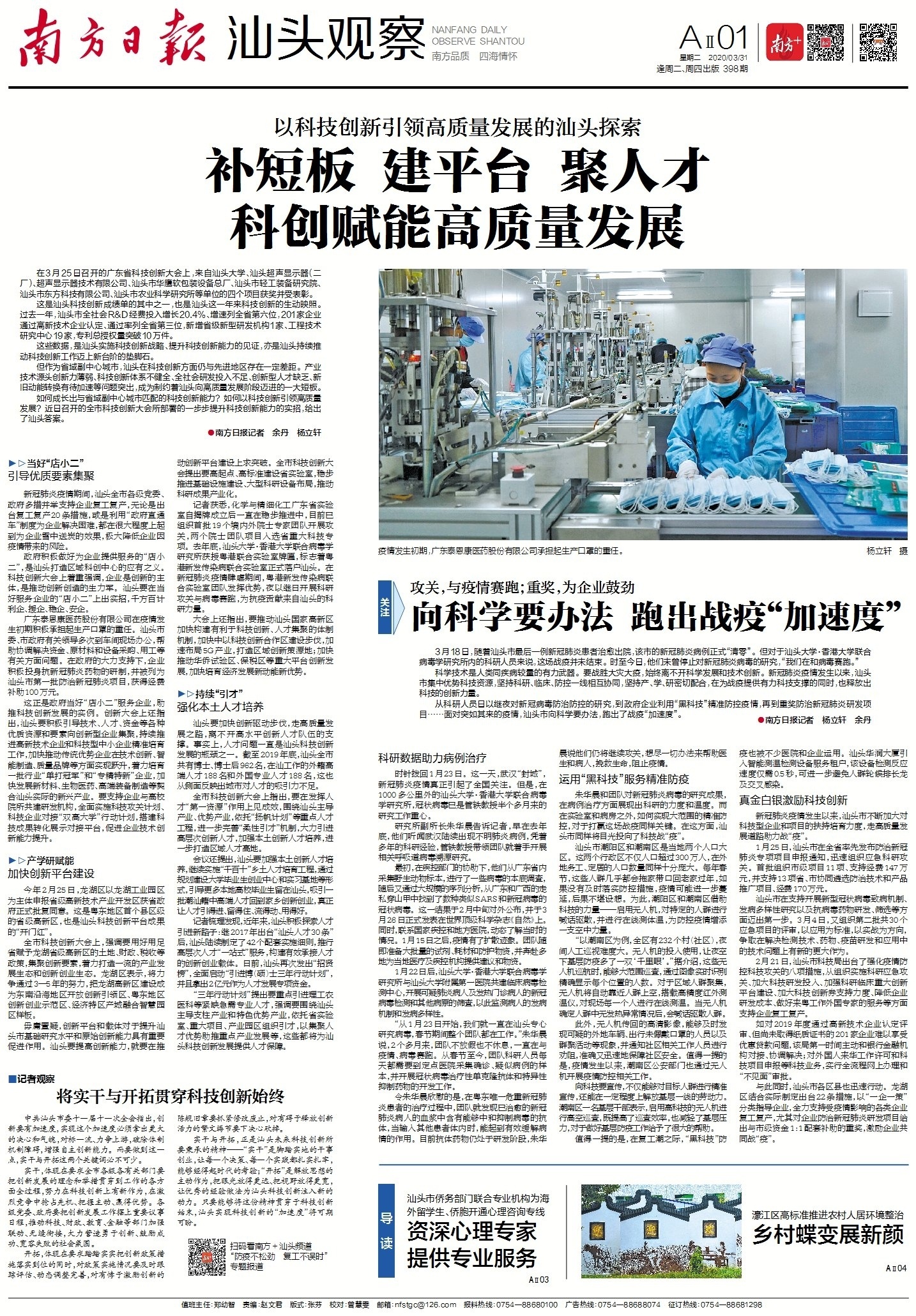 新冠肺炎疫情发生以来,汕头市不断加大对科技型企业和项目的扶持培育力度,走高质量发展道路助力战“疫”。