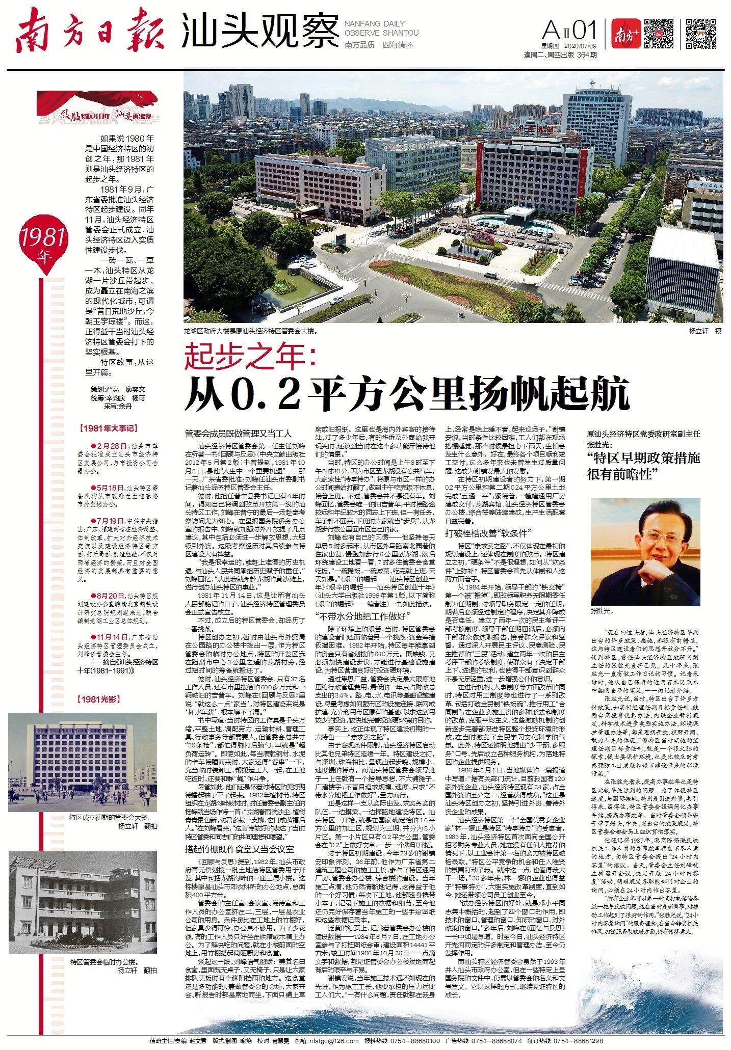 即日起,南方日报推出“致敬特区40年 汕头再出发”系列报道,回顾改革开放历史进程,总结汕头经济特区发展经验,进一步讲好改革开放故事、特区故事,振奋新时代改革开放再出发的精气神。敬请垂注!