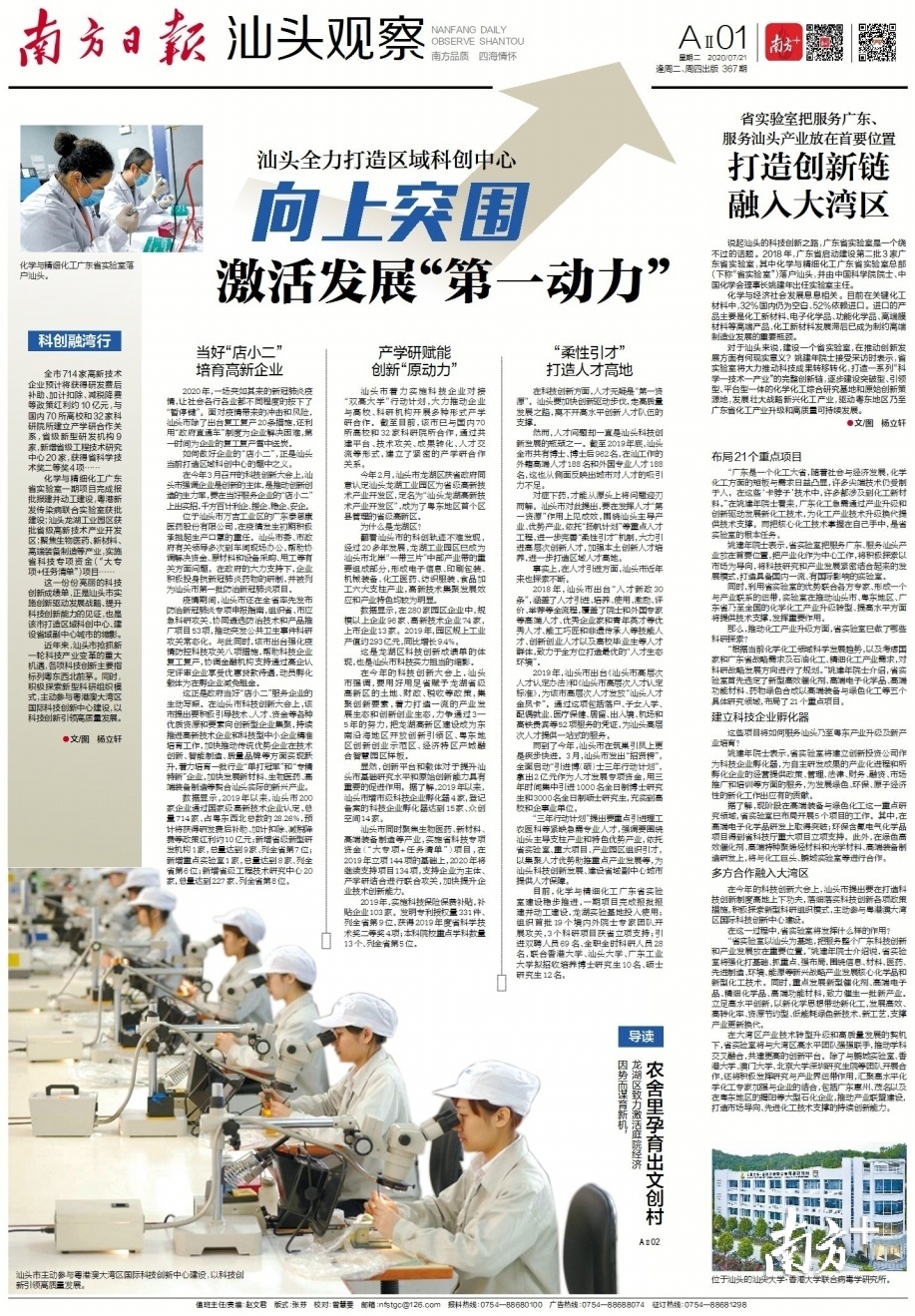 在今年的科技创新大会上,汕头市提出要在打造科技创新制度高地上下功夫,落细落实科技创新各项政策措施,积极探索新型科研组织模式,主动参与粤港澳大湾区国际科技创新中心建设。