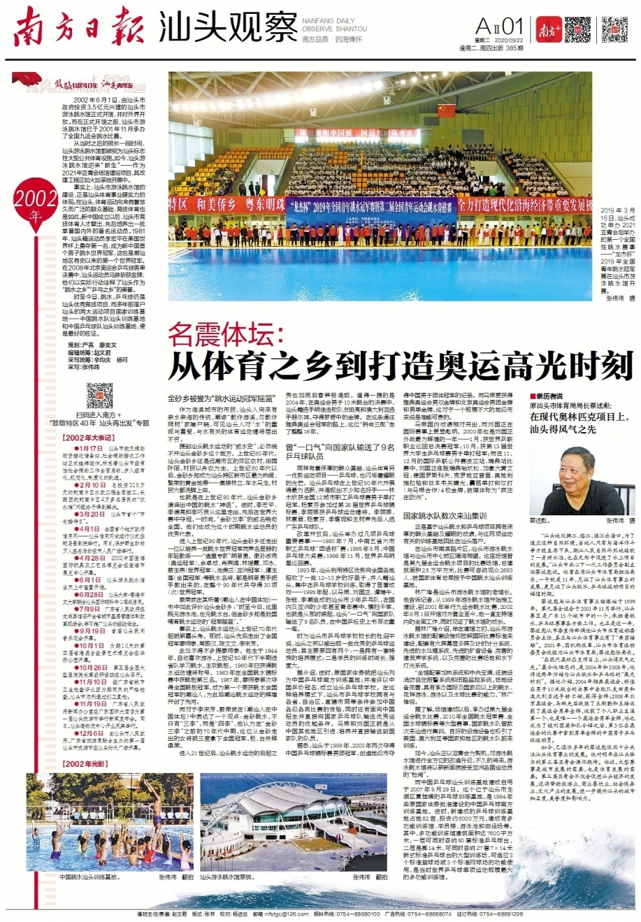 时至今日,跳水、乒乓球仍是汕头优秀竞技项目,而多年前落户汕头的两大运动项目国家训练基地——中国跳水队汕头训练基地和中国乒乓球队汕头训练基地,便是最好的佐证。