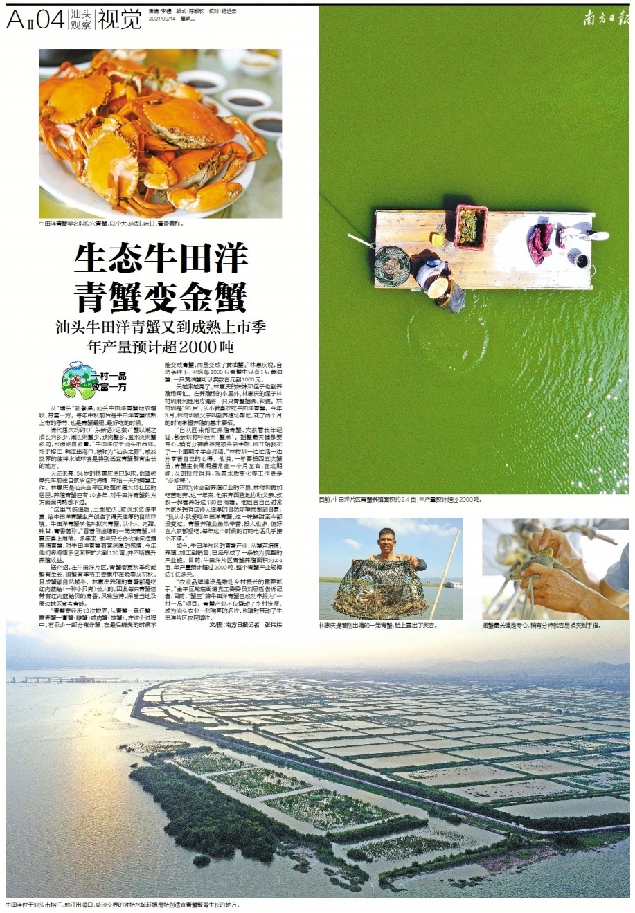 从“塘头”到餐桌,汕头牛田洋青蟹助农增收、带富一方。每年中秋前后是牛田洋青蟹成熟上市的季节,也是青蟹最肥、最好吃的时候。