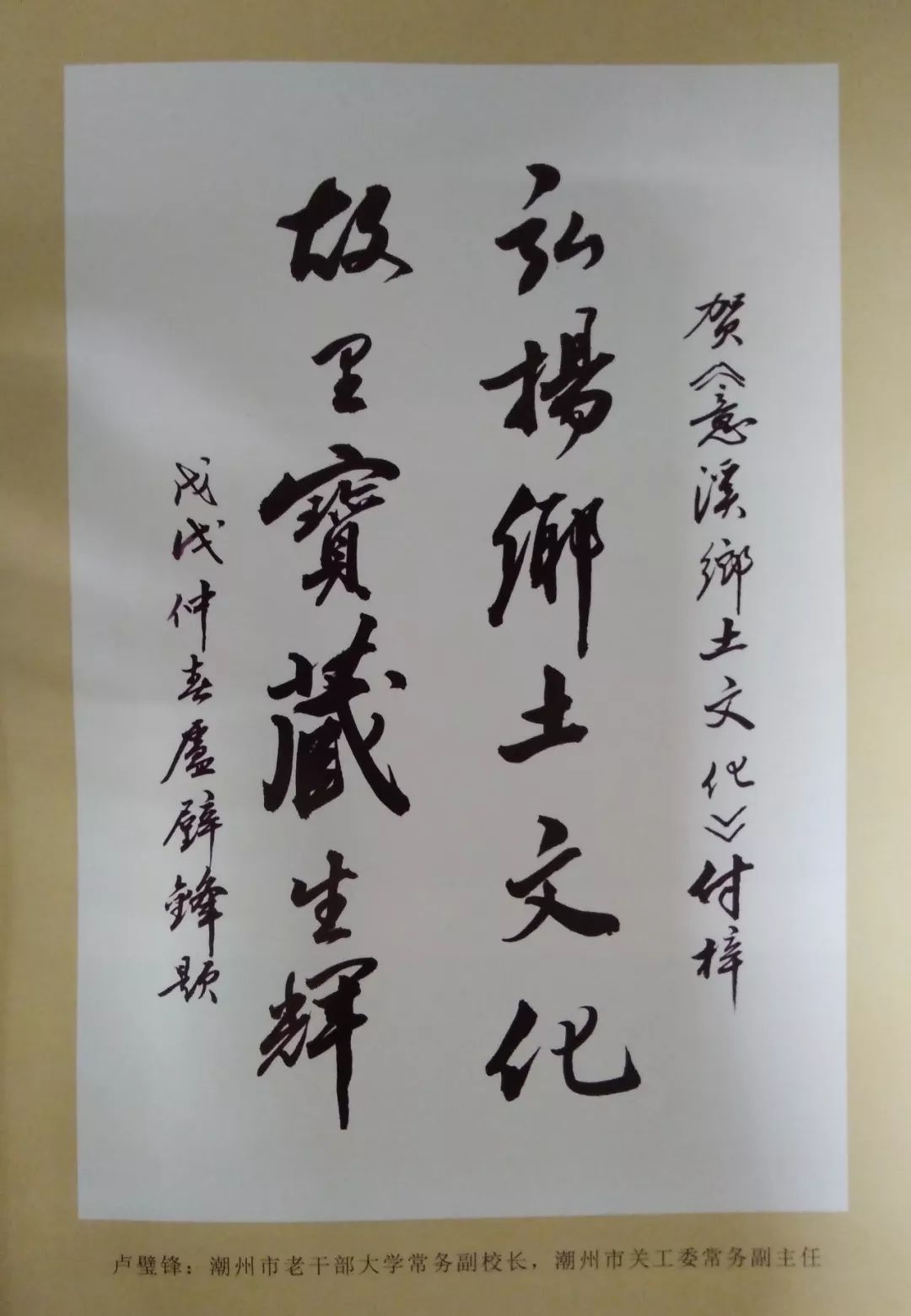 ▲潮州市老干部大学常务副校长,潮州市关工委常务副主任卢璧锋题词