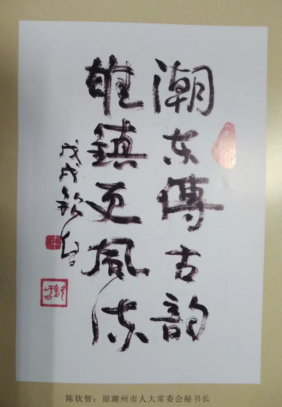 ▲原潮州市人大常委会秘书长陈钦智题词