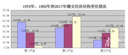 “四十年来,潮安的经济结构发生了大变化,这些变化也是优化。”李奕光介绍称,第一产业农业逐步退出主导地位,取而代之的是第二产业工业,工业渐渐成为主导产业,是经济平稳发展的重要支撑。而包括各类服务和商品贸易的第三产业的经济地位则在逐步提升,现已成为拉动全区经济增长的主动力。