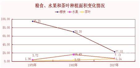“40年来,粮食种植面积大量减少,水果种植面积先增后减,茶叶种植面积不断扩大。”李奕光称,这个变化显示,从1978年以来,潮安农业生产经历了改革开放初期“以粮为纲”,改革开放后为提高土地收益逐步发展经济作物,到近十年来大力发展特色农业的大转变。