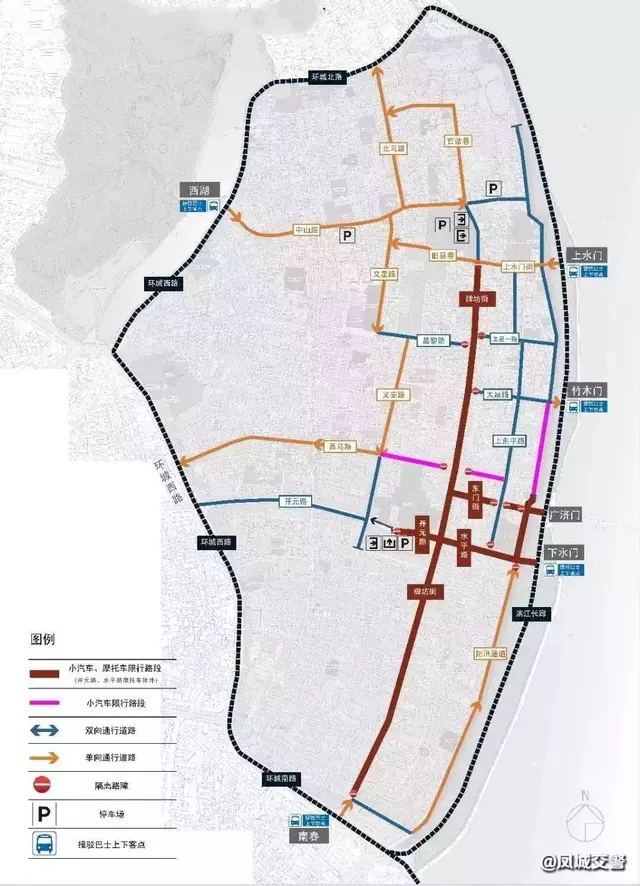 四、从南堤路往北关停车场(游客集散中心)行驶路线: