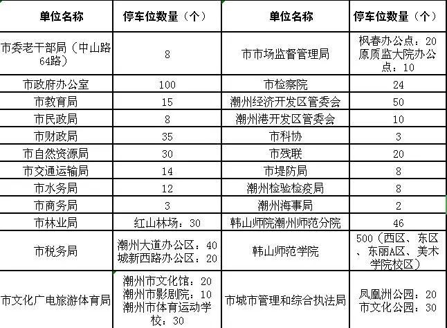 据了解,为了缓解古城区道路交通压力,营造良好的节日道路交通环境。根据相关通知要求,春节期间,潮州全市机关事业单位逾两千个停车位免费对外开放。