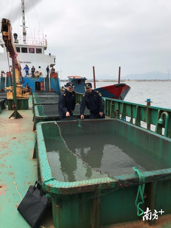 大年初三,饶平海关查验科忻泽和同事们坐了半个多小时的渔船,来到海上网箱养殖场,为输韩活鱼运输船“丰海2”开展检验监管和施封工作。一直以来,饶平海关始终坚持“关口前移”“船边监管”,为活鱼出口提供通关便利。