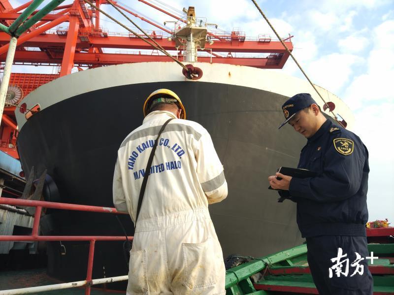 尽管冬天海边寒风凛冽,但鲁昀不断在煤船上下穿梭测量,早已满头大汗。他告诉记者,这船水尺计重完成后,他还得马不停蹄地赶往欧华能源码头,为“NS FRONTIER”号液化气船开展卸货后检验鉴定工作。鲁昀称,做完重量鉴定,进口煤船将开始24小时不间断的卸煤,海关关员需要在卸煤过程中,全程跟进,做好取样、制样工作,才能制备出品质检测样品。