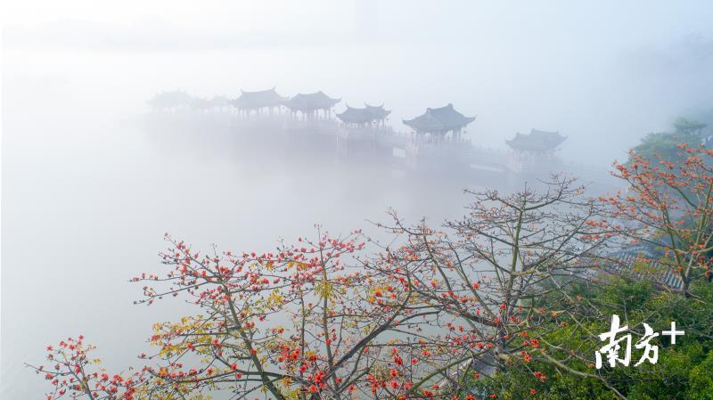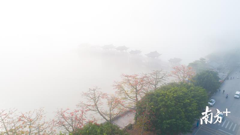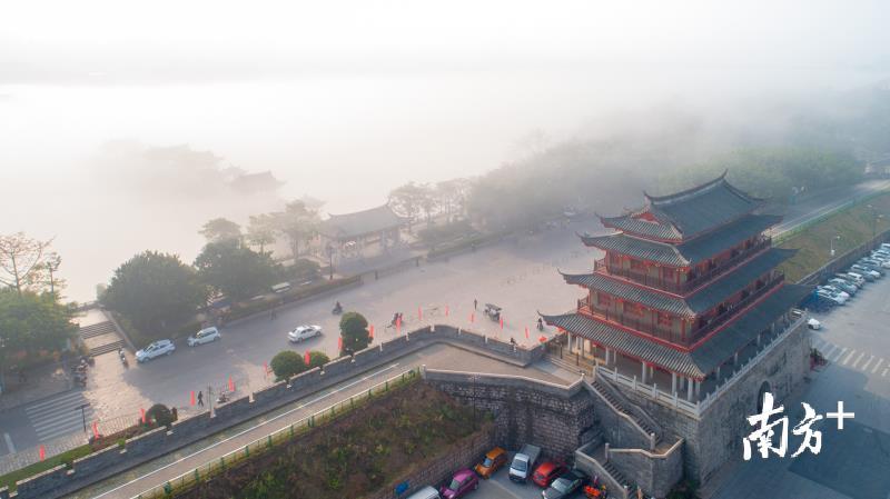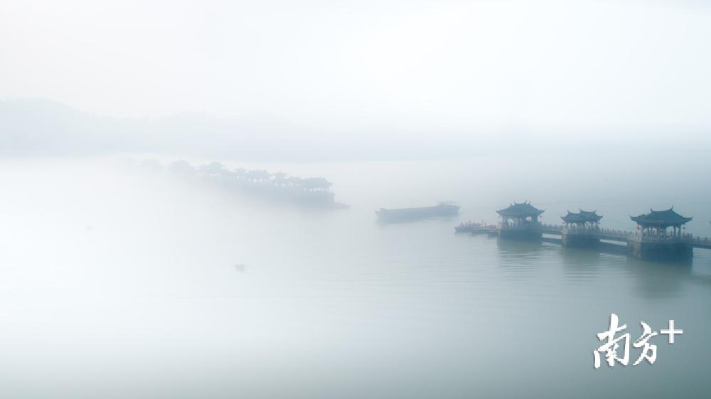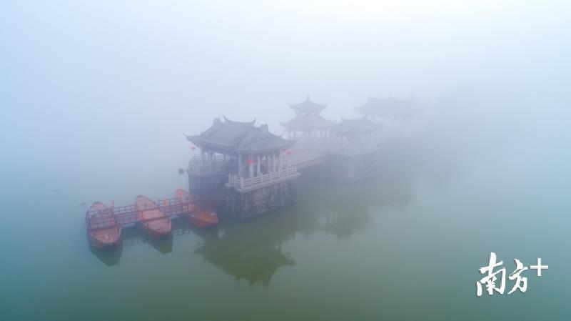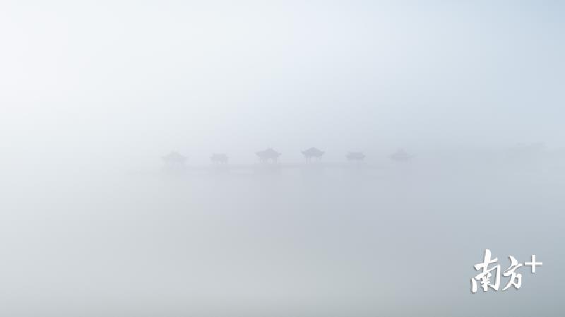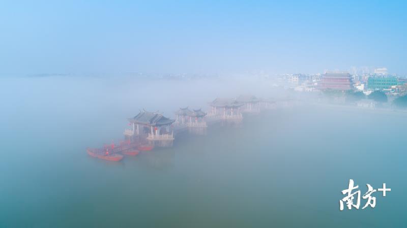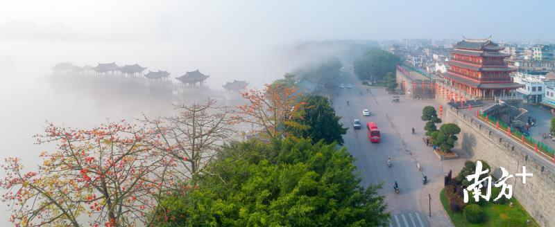 今天早上,潮州市部分地区出现能见度小于500米的大雾天气。潮州气象台于今早6时26分发布大雾黄色预警信号,目前已解除。韩江边的湘子桥和古城在大雾中若隐若现,云雾弥漫,有如仙境。摄影师林文强用无人机拍下了这一短暂呈现的美景,令人赞叹不已。