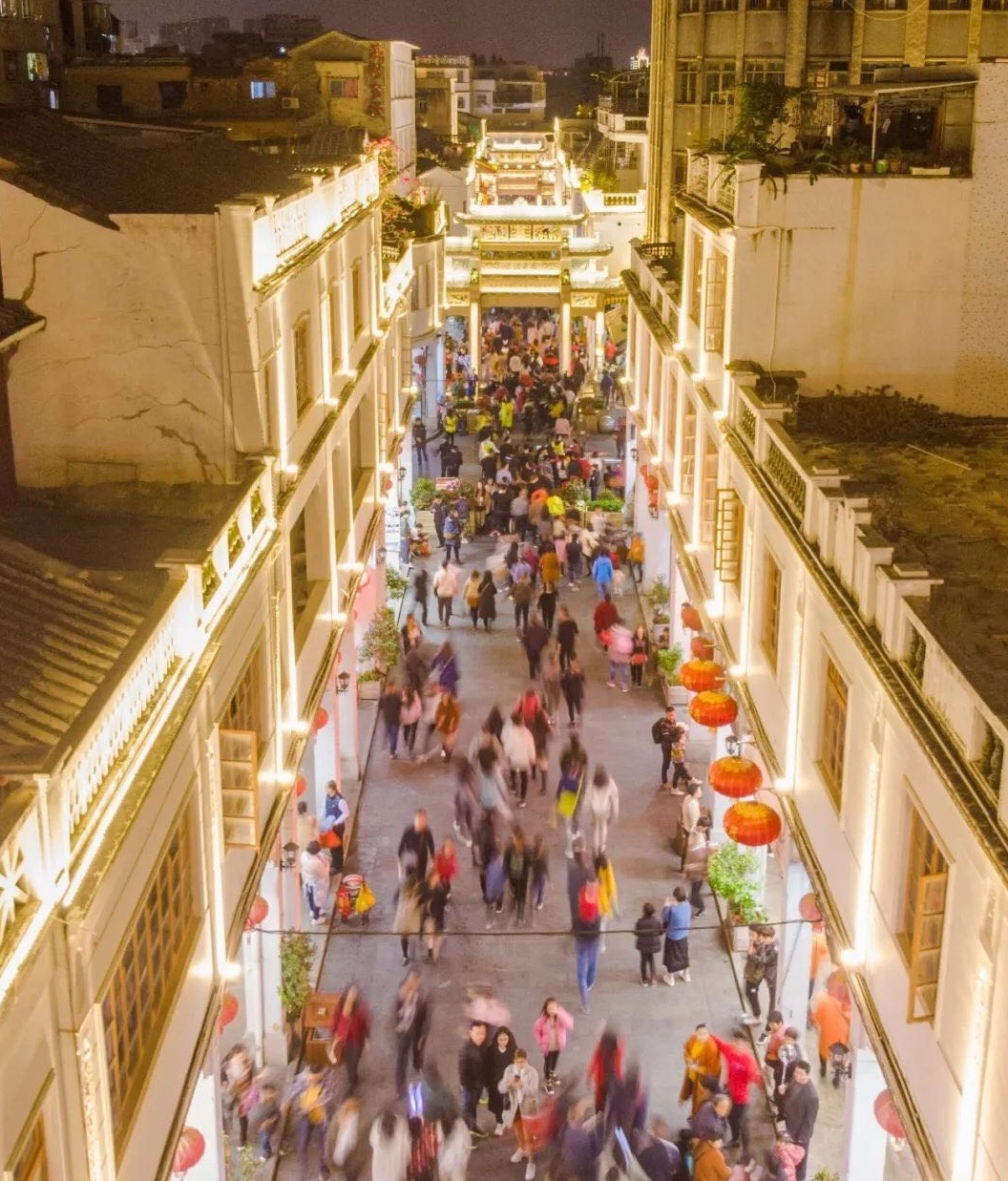近两年的春节、国庆黄金周,潮州古城文化旅游持续火爆,倍增的游客,多来自周边城市、珠三角、香港、福建、江浙一带,牌坊街及周边地区旅游购物活跃。据统计,2019年春节,古城区累计接待海内外游客约89.1万人次,比增41.32%,旅游总收入约20500万元,比增41.47%,古城文化旅游特色区已成为粤东旅游中心和全省最受欢迎的旅游目的地之一。