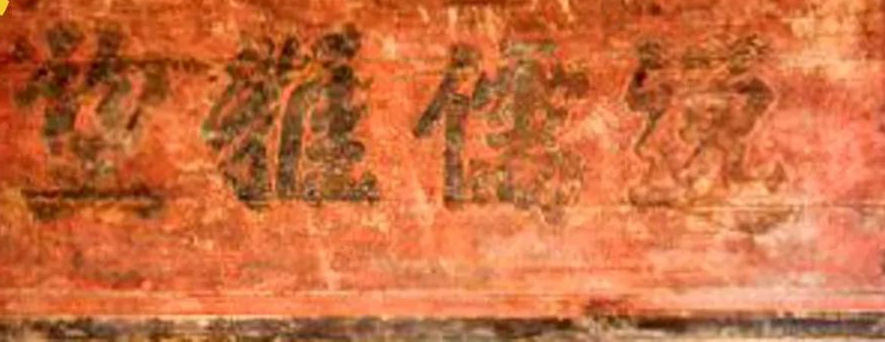宗祠大门两侧上,分别彩绘红色圆形凤凰图腾。