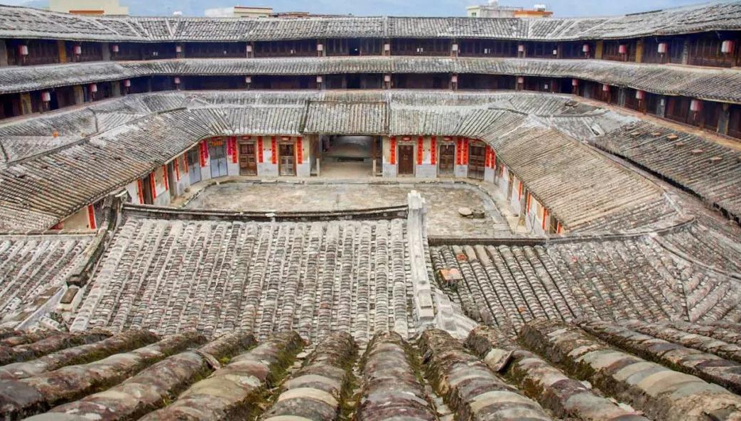 泰华楼是一座少见的长方形土楼,楼长43米、宽17米、占地3亩多,共有房间26间,3层楼房层层相通。