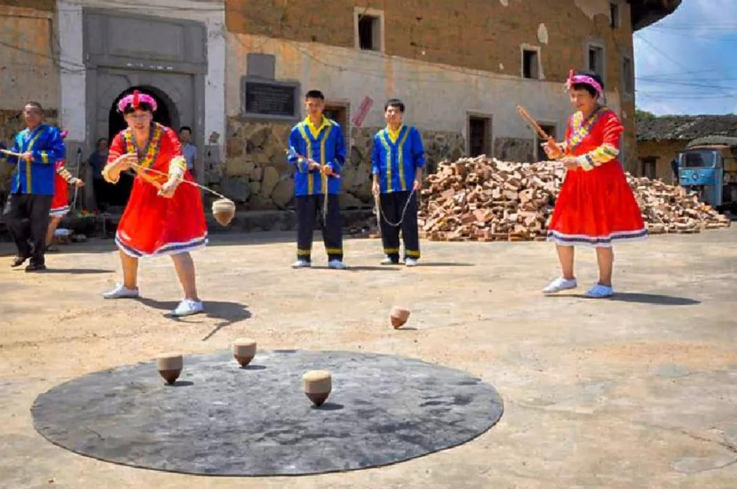 逢节假日,蓝屋村人会聚集在泰华楼,楼内唱山歌,楼前打陀螺,这里是传承民族文化的大舞台。