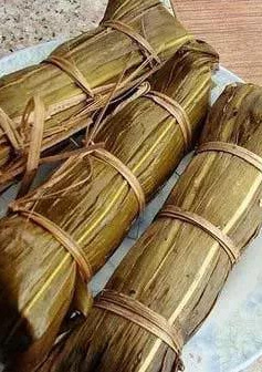 顾名思义,菅叶粽就用菅叶包裹而成的粽子。约20厘米长,像根玉米的样子,因此民间又称牯角。