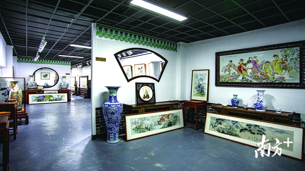 彩绘于陶瓷之上,是为潮彩,如今已是国家级非遗项目。在千笔文化国画瓷研究院,藏品形制多样,既有以斗方、扇面、条屏为主的瓷板,也有中、大型陶瓷器皿。在这里可以“游山玩水”“临泉听声”,也可以“赏花观鸟”,如闲云野鹤。