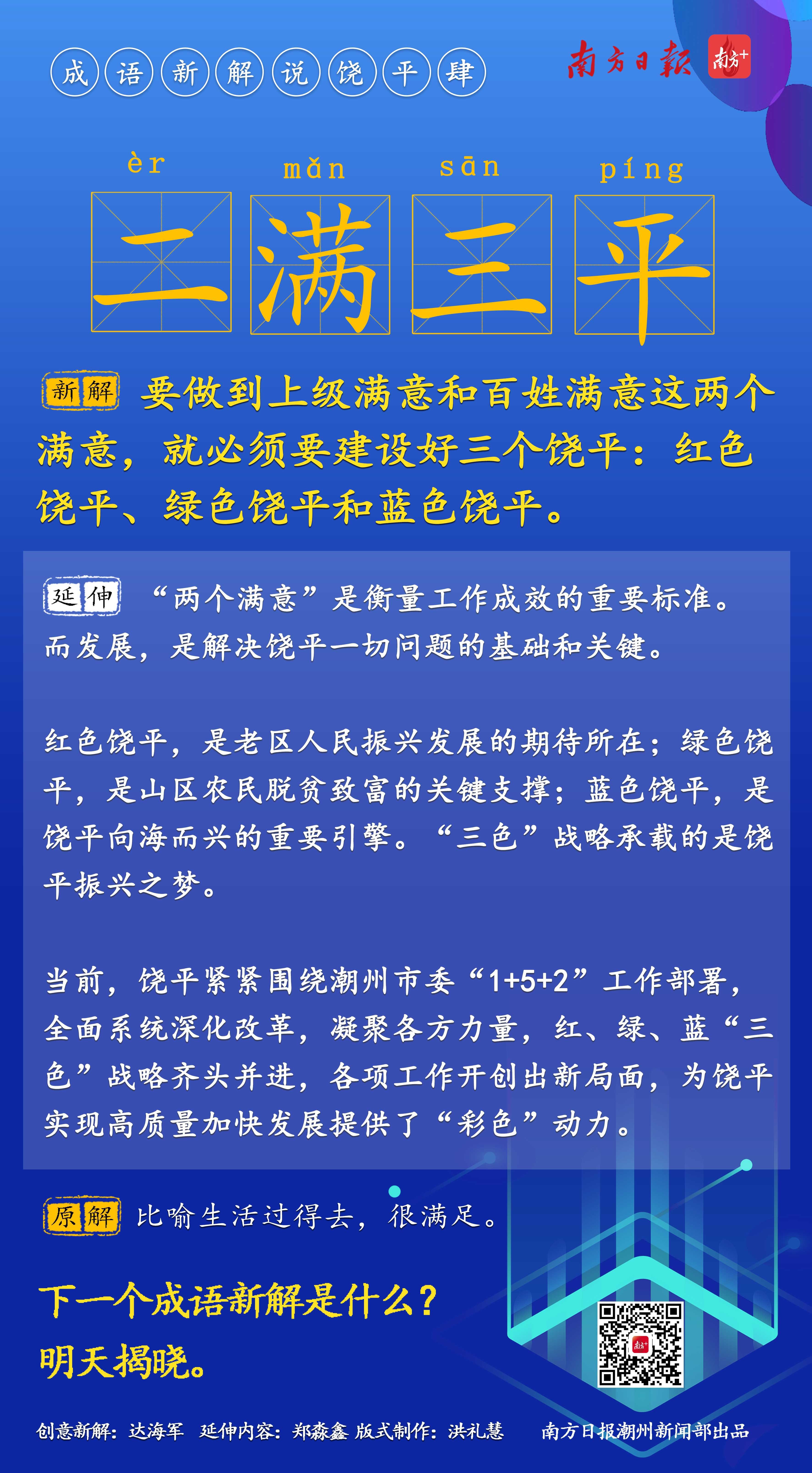 对此,南方日报潮州新闻部根据上述“饶平现象”,推出“成语新解说饶平”系列创意报道,以轻松有趣的方式呈现饶平的发展面貌和成效。同时,也欢迎大家踊跃参与,有经典的成语新解,可以在评论区留言,我们将择优刊发。