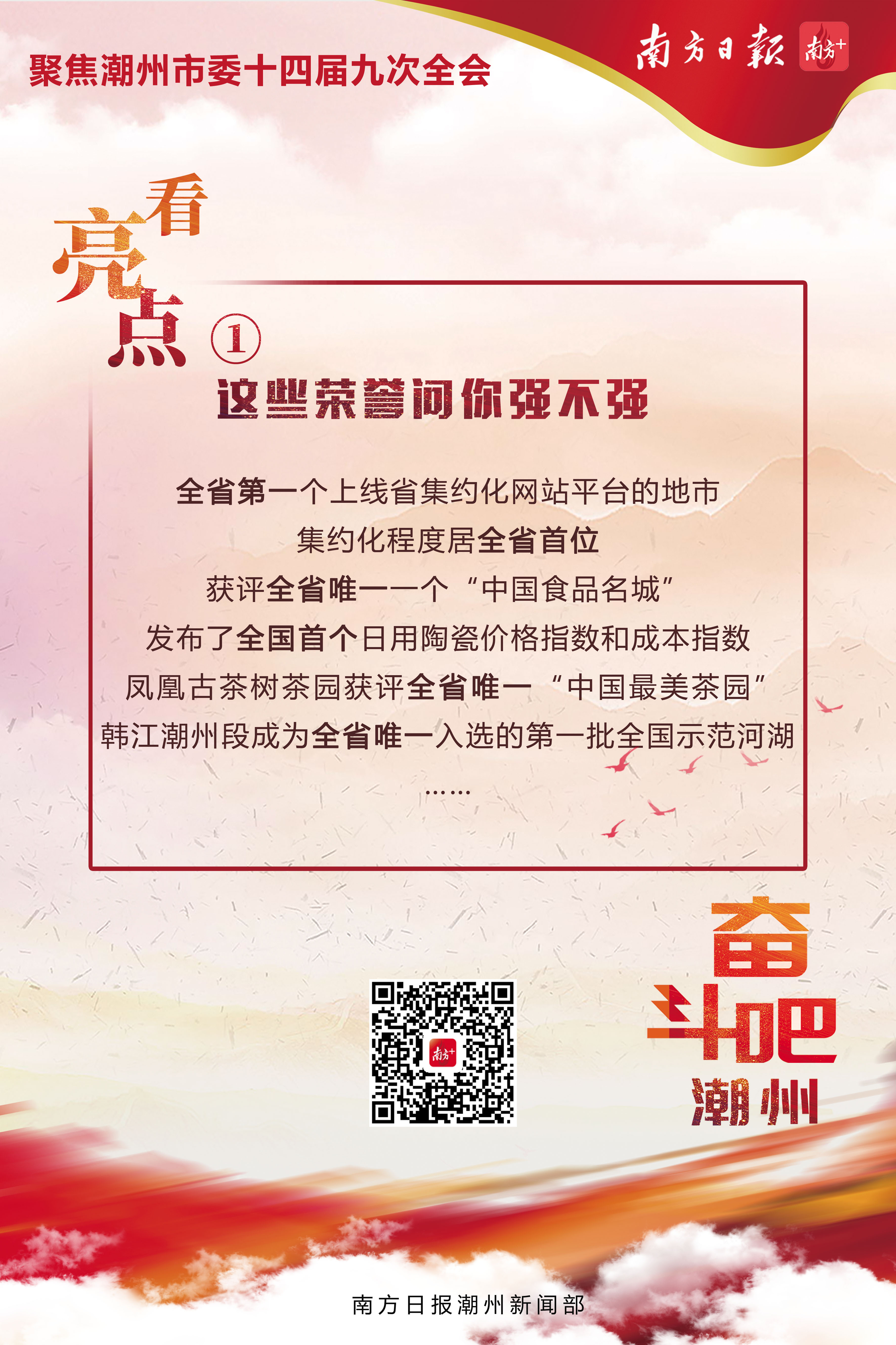 使命在肩,担当在身。潮州市委十四届九次全会今天召开。这是一场面对新形势新任务新要求,擘画潮州高质量发展之路的重要会议。尤为关注的是,全会发出了“心魔不除,大道难畅;羁绊未斩,疾步难行”振聋发聩的声音,强调要久久为功把“1+5+2”施工图干到底。南方日报潮州新闻部特别策划“奋斗吧潮州”系列报道,从看亮点、聚焦点、剖难点、敲重点、建支点、夯起点、创特点、享观点等多个方面进行解读。敬请垂注。