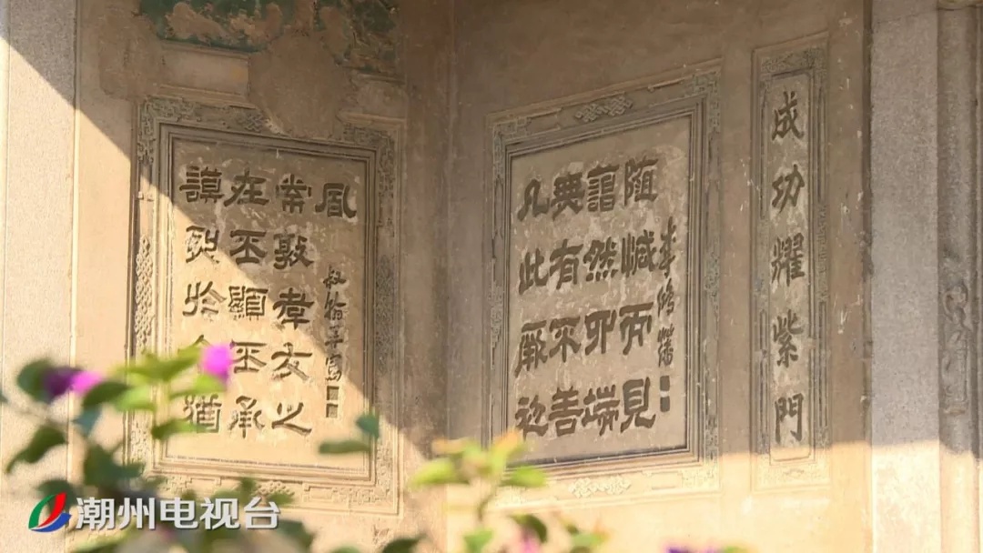 而这座门楼的两边按照古民居的做法,传统故事、书法和图案装饰出自不同建筑师傅之手,是高超灰塑技艺的集中展示。