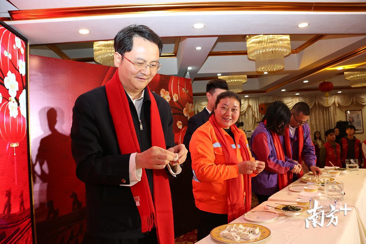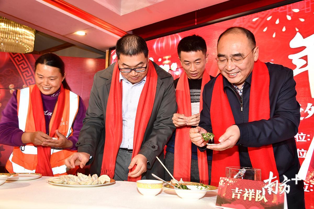 团年饭上年味满满,气氛喜庆。台上,李雅林、殷昭举现场组队,与“新潮州人”代表一起包饺子拼手艺;台下,大家围桌将团圆与喜庆包进饺子里。“饺子的皮和馅要把握好,不厚不薄、不多不少。就像今年的工作要稳中求进,不能冒进,也不能慢行。只有掌握‘熟练工’的本领,才能行久致远、又快又稳。”李雅林现场示范如何包饺子,并借包饺子谈如何做好潮州工作。