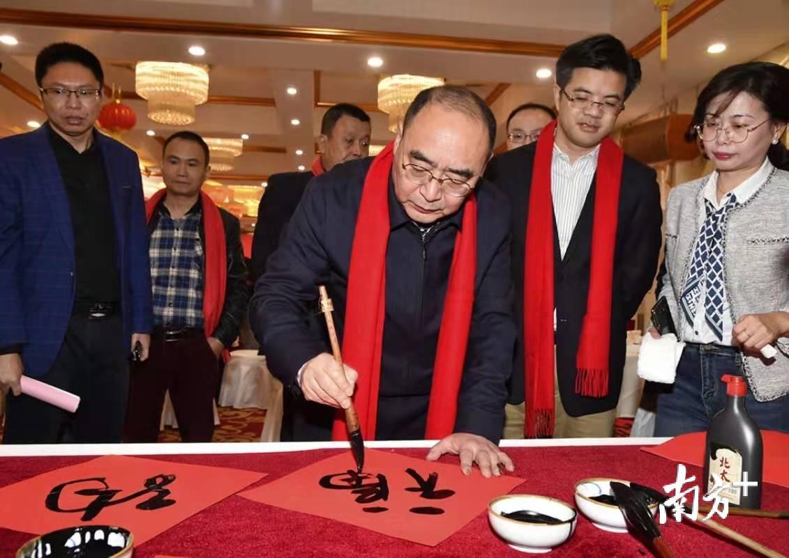 活动中,李雅林还当场挥毫,写下“金鼠纳福”四个大字,并与环卫工人一起制作红桃粿、鼠壳粿,共同体验潮州新春年味。