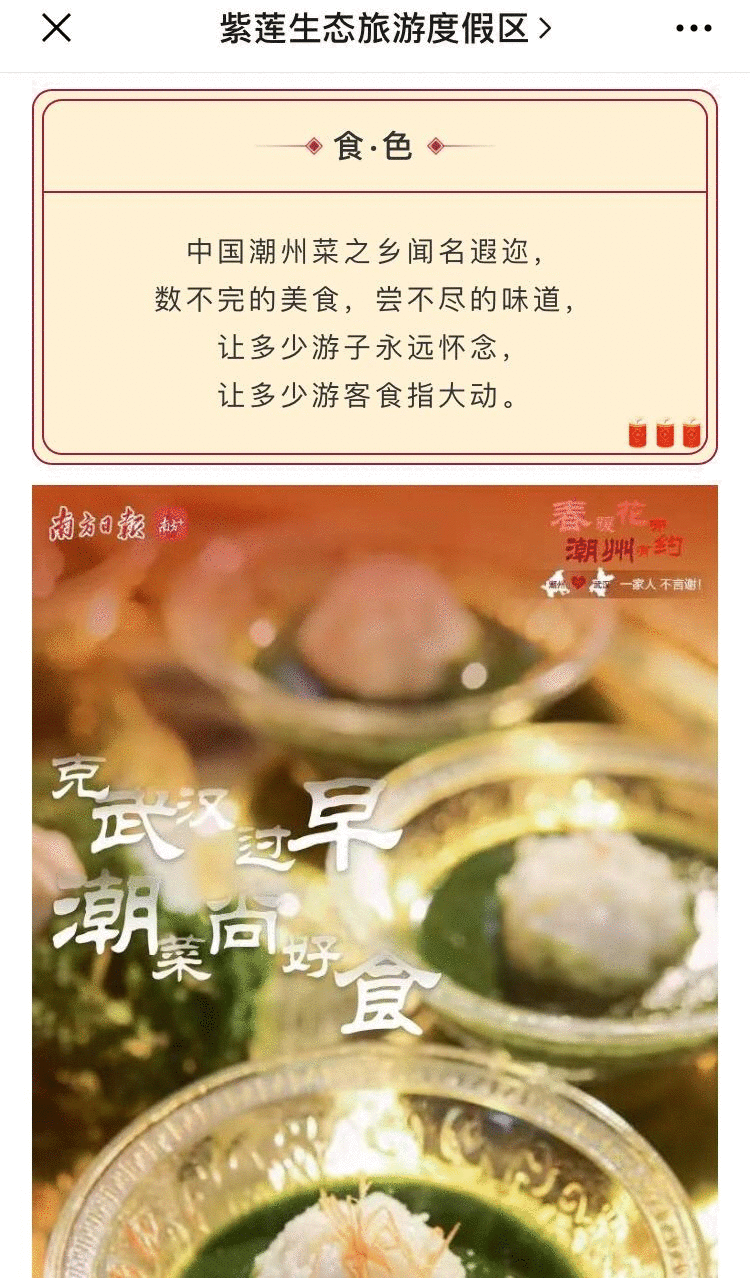 近日,由潮州市文化广电旅游体育局和南方日报潮州新闻部联合出品的8张唯美海报回礼湖北,为武汉“重启”预热。8张海报呈现了潮州古与今的韵味,展现了潮州山与海的魅力,诉说了潮州人和城的故事,留下了潮州食和色的念想。