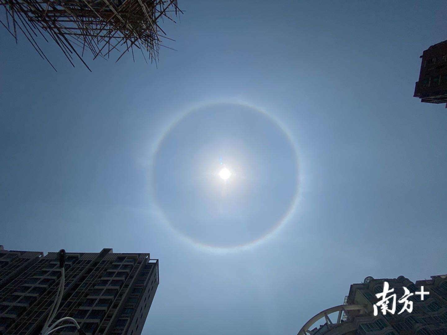 据了解,日晕又叫圆虹,是一种大气光学现象,是日光通过卷层云时,受到冰晶的折射或反射而形成的。日晕在一定程度上可以成为天气变化的一种前兆,但并非每次日晕都会引起明显降雨。