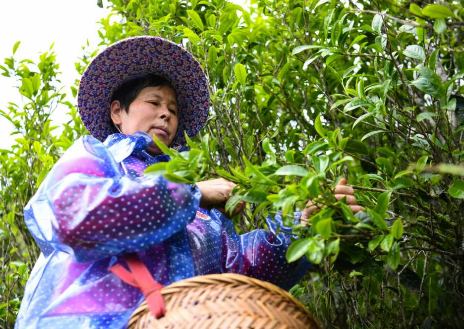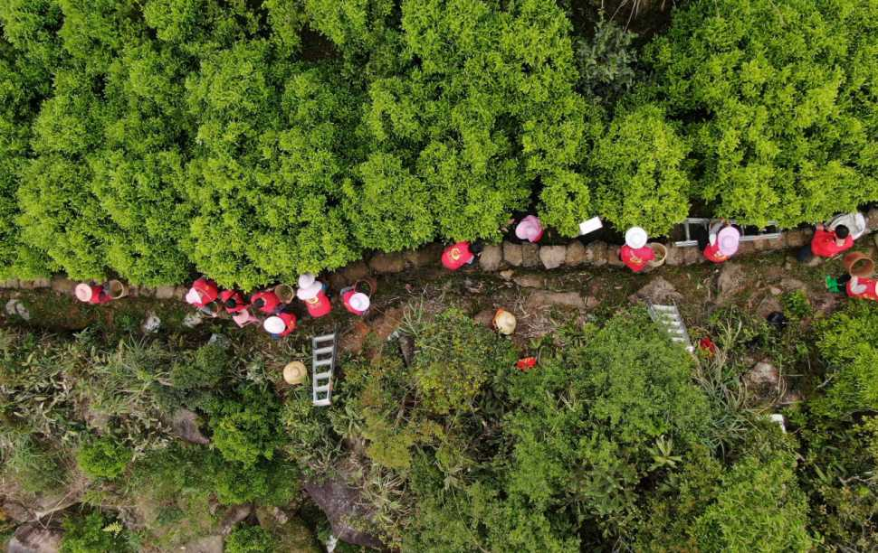 ▲在广东省潮州市潮安区凤凰单丛茶省级现代农业产业园,采茶工在采茶