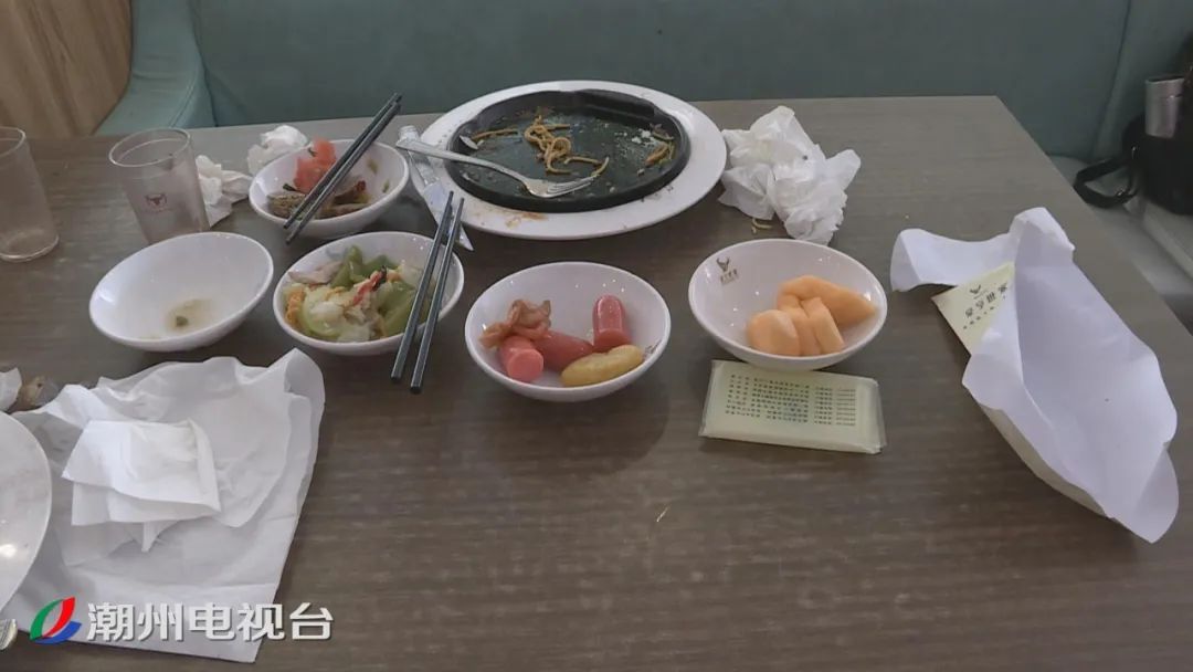 自助餐的话,一般大桌会拿比较多,因为人多嘛,浪费也还是会存在。之前也有说浪费多少我们要进行收费,但是客人也是没有多大反响,还是会拿比较多。一般晚上人多一点,食物残渣是可以达到两个大垃圾桶那么多。