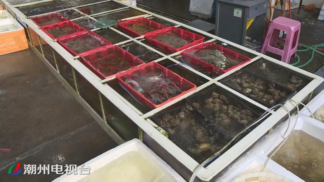 在市区枫春市场和粤潮市场,各个海鲜摊档货源充足,海鱼、虾、蟹、贝壳类等各类海产品丰富多样、应有尽有,吸引不少市民前来购买。