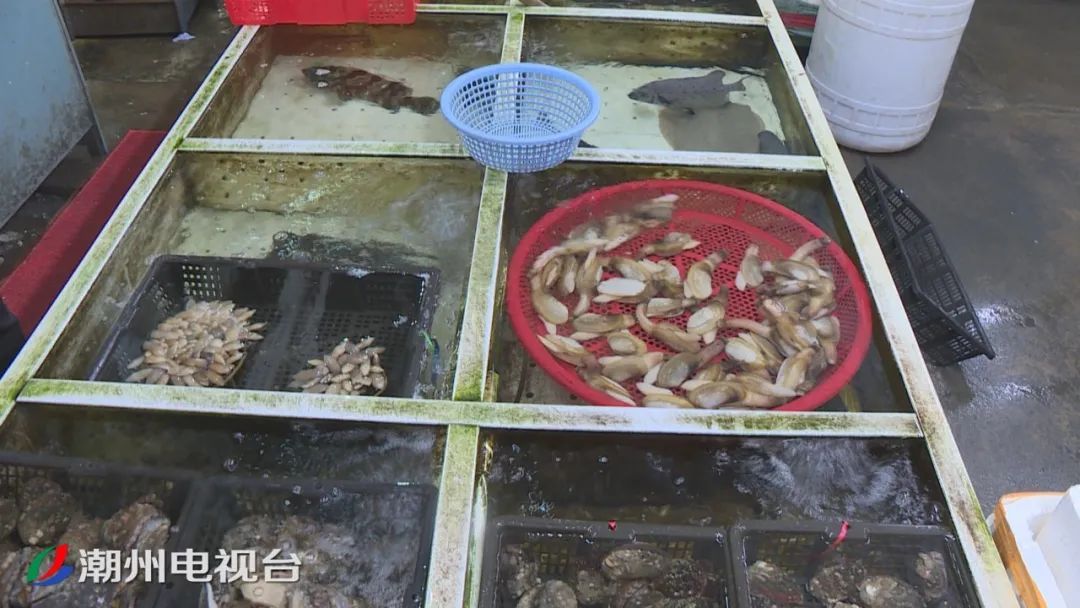 昨天进了濑尿虾、花蟹和石斑鱼,贝壳类昨天进了花蛤、车白、指甲蚶、小象鼻蚌,还有蚝等。