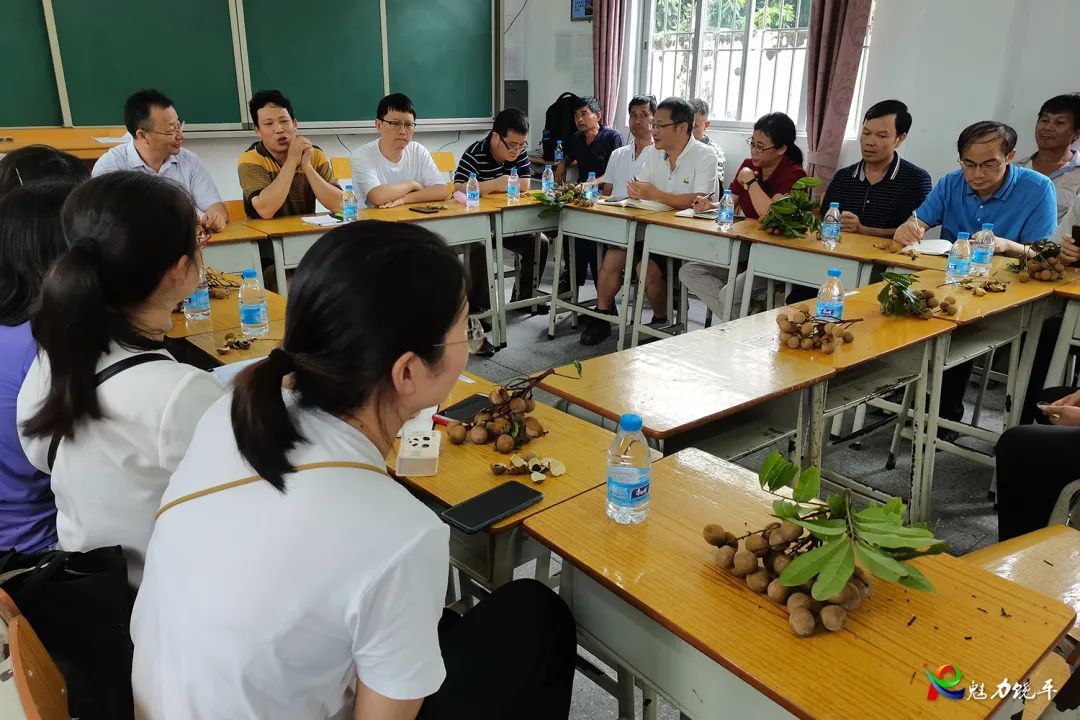 当天上午,华南农业大学首席专家黄旭明教授带领省龙眼产业体系岗位专家团队、示范基地负责人及华南农业大学园艺学院成员来到位于万山红的潮州市果树研究所,对该所今年培育种植的15个新品种、新品系龙眼进行品鉴,评选优质的龙眼品种,有助于潮州市果树研究所指导农户推广种植。