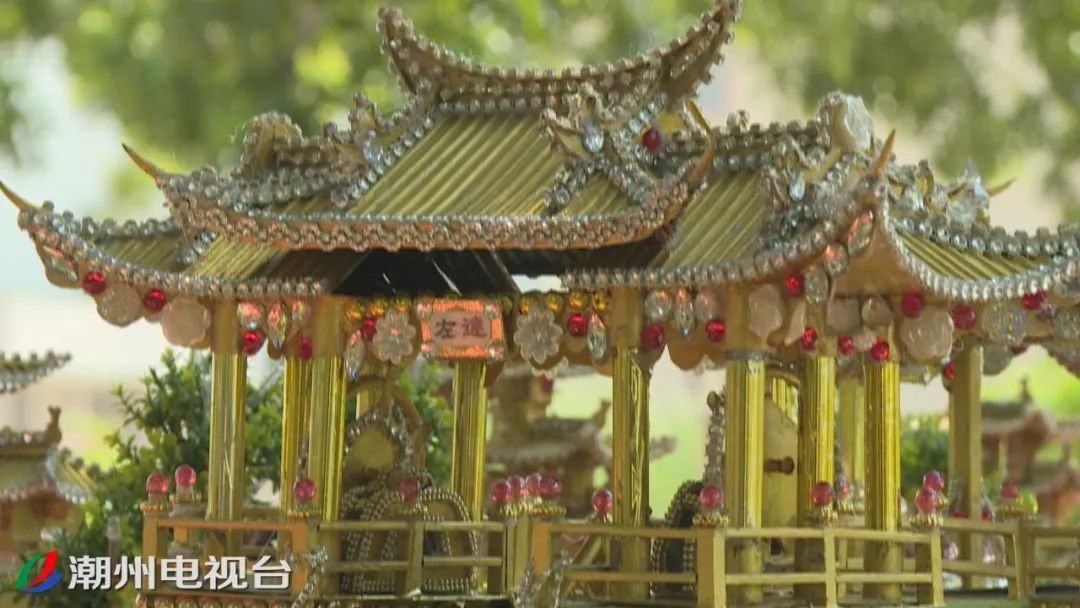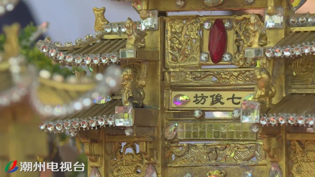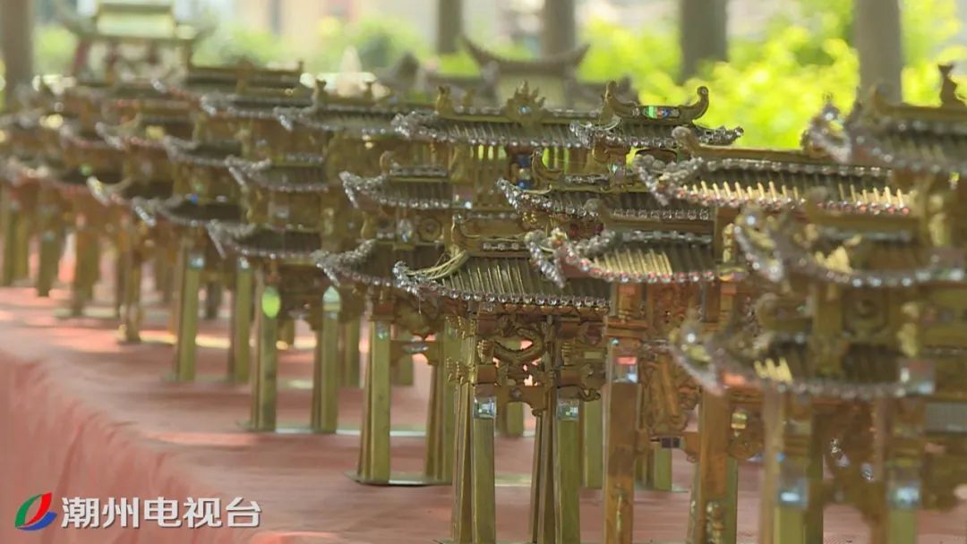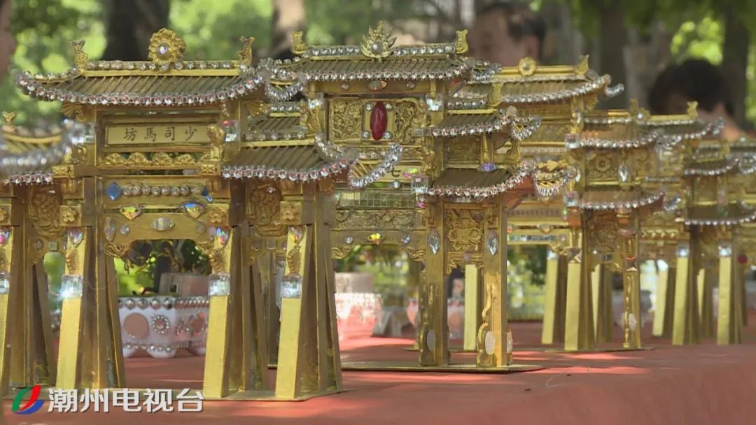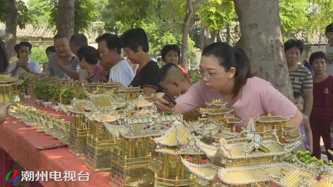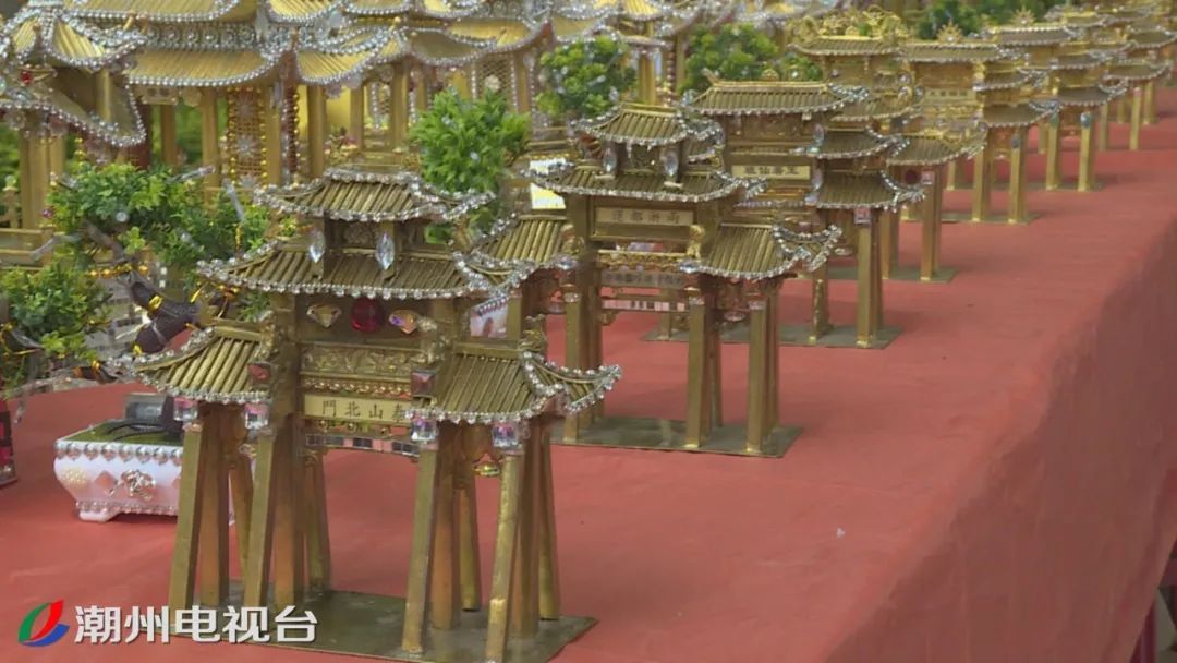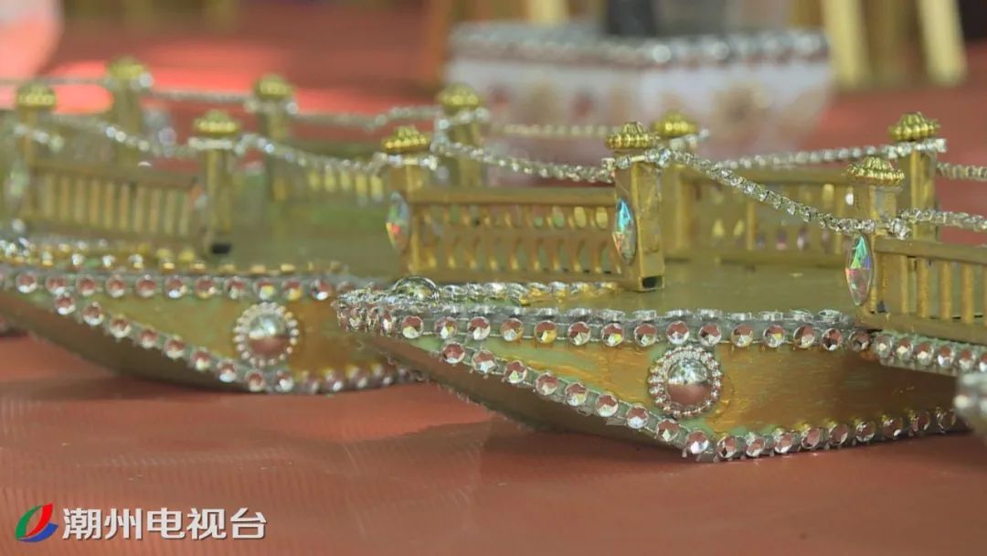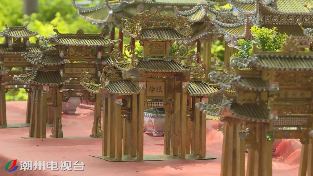 亭台楼阁、飞檐翘角,每一座牌坊无一相同;梭船相连、楼台矗立,古桥风韵尽收眼底。眼前的牌坊街与广济桥模型均用铜片手工打造而成,长度各10米,作品工艺精致、金碧辉煌,吸引了周边众多村民前来观看,驻足欣赏。