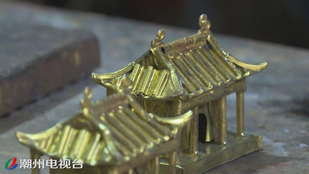 这两件作品均出自洪巷村村民李维民之手,老人家今年76岁,年轻时是一名打铁匠,学了一门好手艺。五年前,李维民萌发了创作铜制潮州名胜古迹模型的想法。