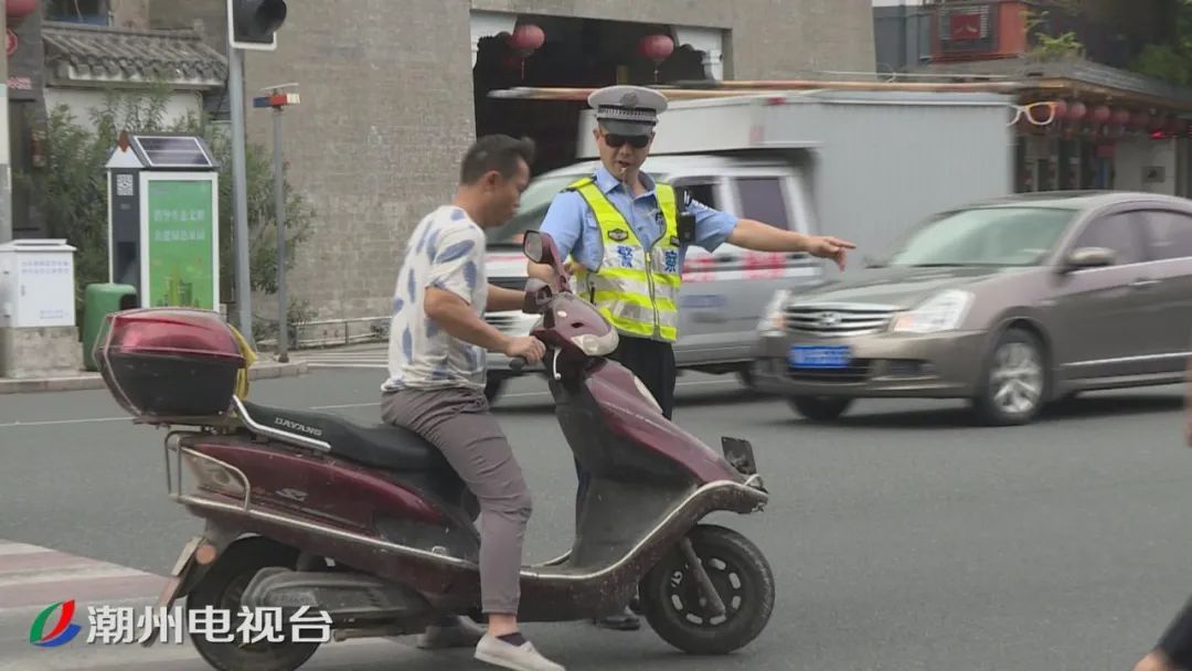 在市区河头环岛处,交警部门主要查处无牌无证摩托车、违规改装三轮车,同时对机动车驾驶员不按交通信号灯指示行驶、逆行、不佩戴安全头盔等行为查处和教育。行动中,这辆红色电动车就因超标且无上牌,被执勤人员拦了下来。