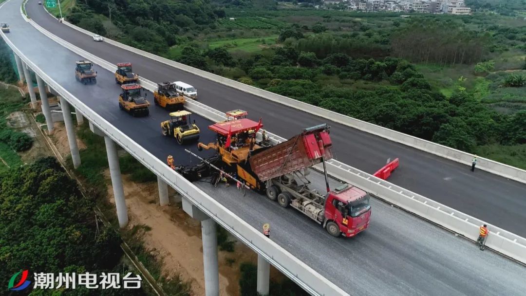 大潮高速公路潮州段是我市重点交通项目之一,目前已全面进入沥青面层铺设阶段,预计10月底完成全部路面工程。此次沥青铺设还引进先进设备,提高施工效率,确保道路质量,为年底建成通车奠定坚实基础。