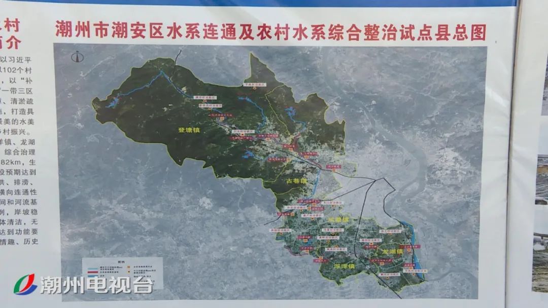 潮安水系连通及农村水系综合整治试点县项目的治理范围包括龙湖、浮洋、登塘、凤塘、古巷等镇的农村水系以及归湖镇的溪美桥水陂。项目规划总投资约6.8亿元,对103条总长124.77公里的河渠、109个总水域面积达464亩的池塘进行综合治理,着力建设94.03公里乡村碧道,打造红色文化体验园、五彩潮安、古桥水韵等18个独具潮安历史文化特色的人文景观,全面提升广大人民群众的安全感、幸福感、获得感,助力乡村振兴。