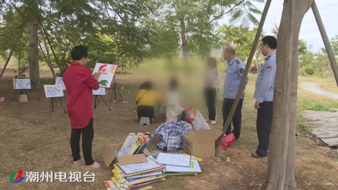 再看这位商贩,自顾自地在草地上摆放桌椅和画板供孩子画画,俨然把公共场所当成自己招揽生意的地盘。旁边这列“小火车”也没挑对地方。玩具火车的轨道就搭设在一处破旧的木板上,不时有孩子前来搭乘玩耍,安全隐患不容小觑。